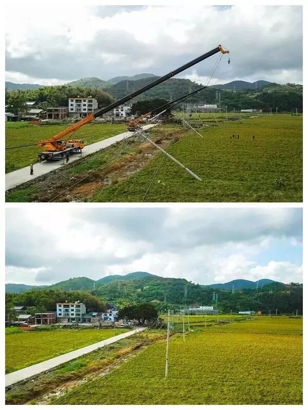 國(guó)網(wǎng)泉州供電公司支援寧德漳灣鎮(zhèn)10千伏橫嶼分線(xiàn)搶修對(duì)比圖。(洪志章/攝)