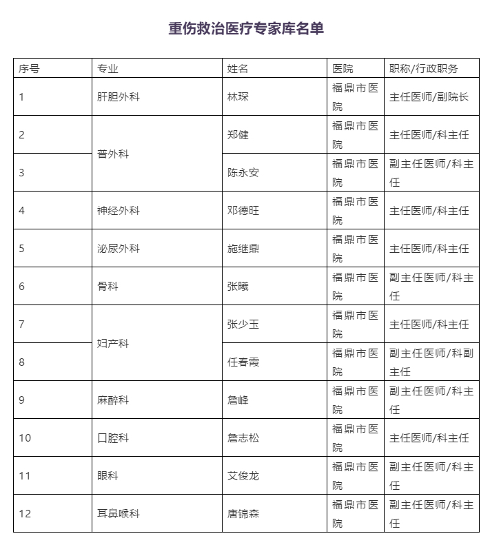 此外,福鼎市公安局交警大隊(duì)與該市衛(wèi)生健康局共同建立市級(jí)道路交通事故重傷救治醫(yī)療專家?guī)臁I婕皩I(yè)包括神經(jīng)外科、骨科、胸外科、急診外科、肝膽外科、ICU等。市級(jí)專家負(fù)責(zé)對(duì)因傷情嚴(yán)重需轉(zhuǎn)院治療的救治對(duì)象,提供緊急醫(yī)學(xué)救援咨詢、建議或者進(jìn)行現(xiàn)場(chǎng)支持;向市級(jí)定點(diǎn)醫(yī)療機(jī)構(gòu)要求選派專家至縣級(jí)定點(diǎn)醫(yī)療機(jī)構(gòu)參與會(huì)診救治。還明確福鼎市醫(yī)院為福鼎市級(jí)交通事故顱腦、心肺、肝脾損傷救援專業(yè)醫(yī)院及交通事故救援點(diǎn),承擔(dān)轄區(qū)內(nèi)道路交通事故急危重癥傷員救治工作。(文/吳寧寧)