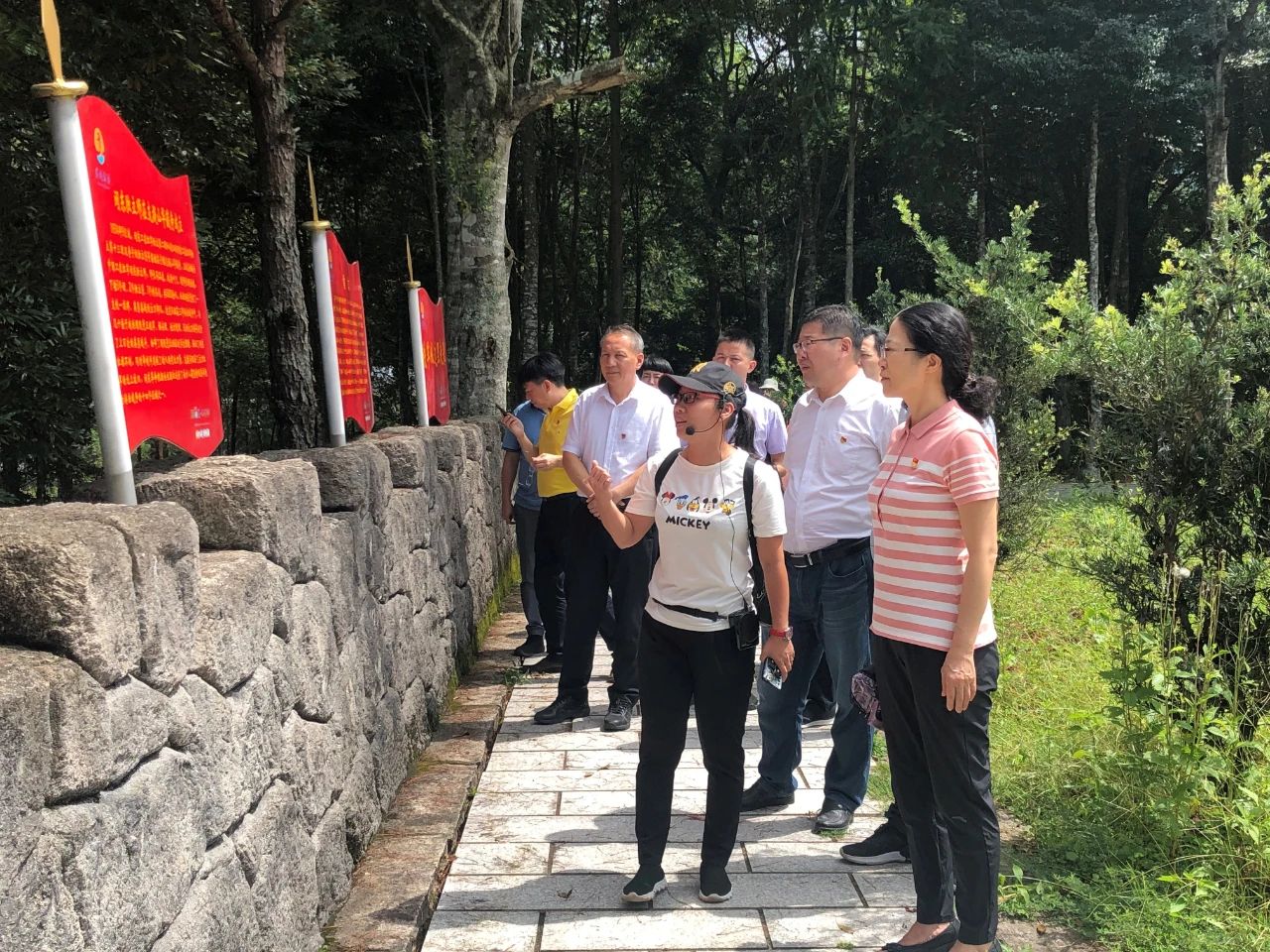 9月2日上午,省、市、區(qū)黨員干部一行冒著酷暑沿著盤山公路,來到大山深處,參觀調(diào)研了蕉城區(qū)虎貝鎮(zhèn)百丈巖戰(zhàn)斗遺址、支提山中國(guó)工農(nóng)閩東獨(dú)立師成立遺址、桃花溪紅軍活動(dòng)遺址、桃花溪村閩東紅軍獨(dú)立師展陳館。