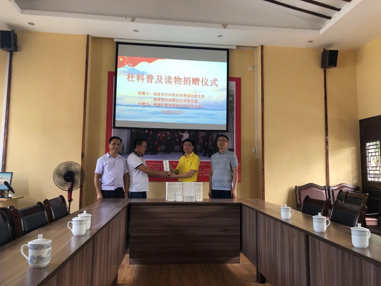 圖為省社科聯(lián)“兩辦”黨支部書記向桃花溪村黨支部捐贈(zèng)社科科普讀物