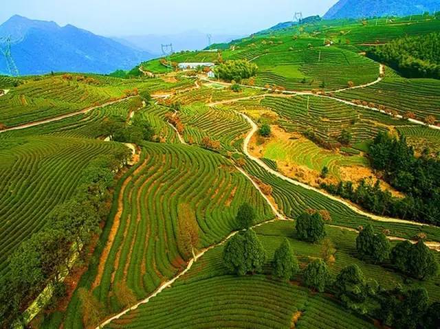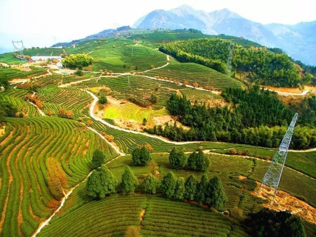 這里的平湖千畝茶場如大寨梯田,高低錯落,青翠碧綠,令人流連忘返。