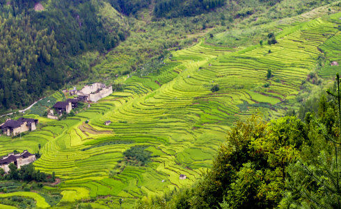 這片梯田面積估計(jì)有大幾百畝,梯田已進(jìn)入稻谷成熟期。