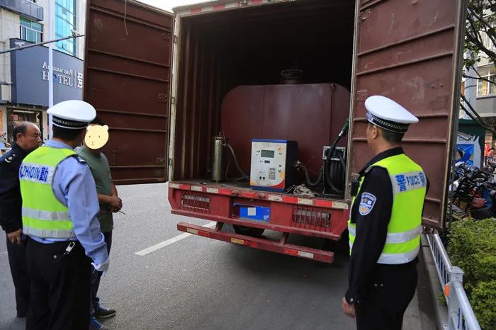 經(jīng)檢查發(fā)現(xiàn),該車經(jīng)過私自改裝,儼然成了一個(gè)“流動(dòng)加油車”,車內(nèi)計(jì)價(jià)器、加油槍等加油設(shè)備齊全。車主未辦理任何?;愤\(yùn)輸、經(jīng)營(yíng)許可證件,未配置任何消防、防爆設(shè)備,就私自在道路上流動(dòng)為各類柴油貨車非法加油,謀取非法利益。目前,該貨車及車內(nèi)的加油設(shè)備和柴油已移交交通執(zhí)法大隊(duì)做進(jìn)一步處理。