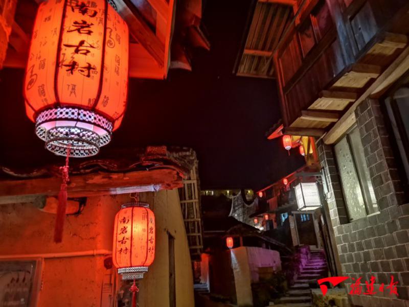 冬日傍晚的南巖村,夜幕已悄然降下,燈火漸次亮了起來,村頭仿古燈廊的一盞盞紅燈籠愈發(fā)顯眼。人們漫步于巷陌,在移步換景中體驗(yàn)著“時空穿越”。