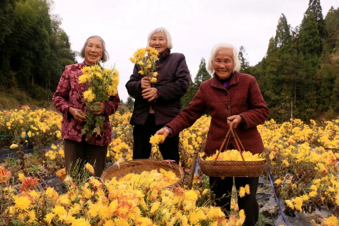 壽寧縣大安鄉(xiāng)亭溪村百菊?qǐng)@里,村民在花叢中忙著采摘金絲皇菊 吳蘇梅 攝