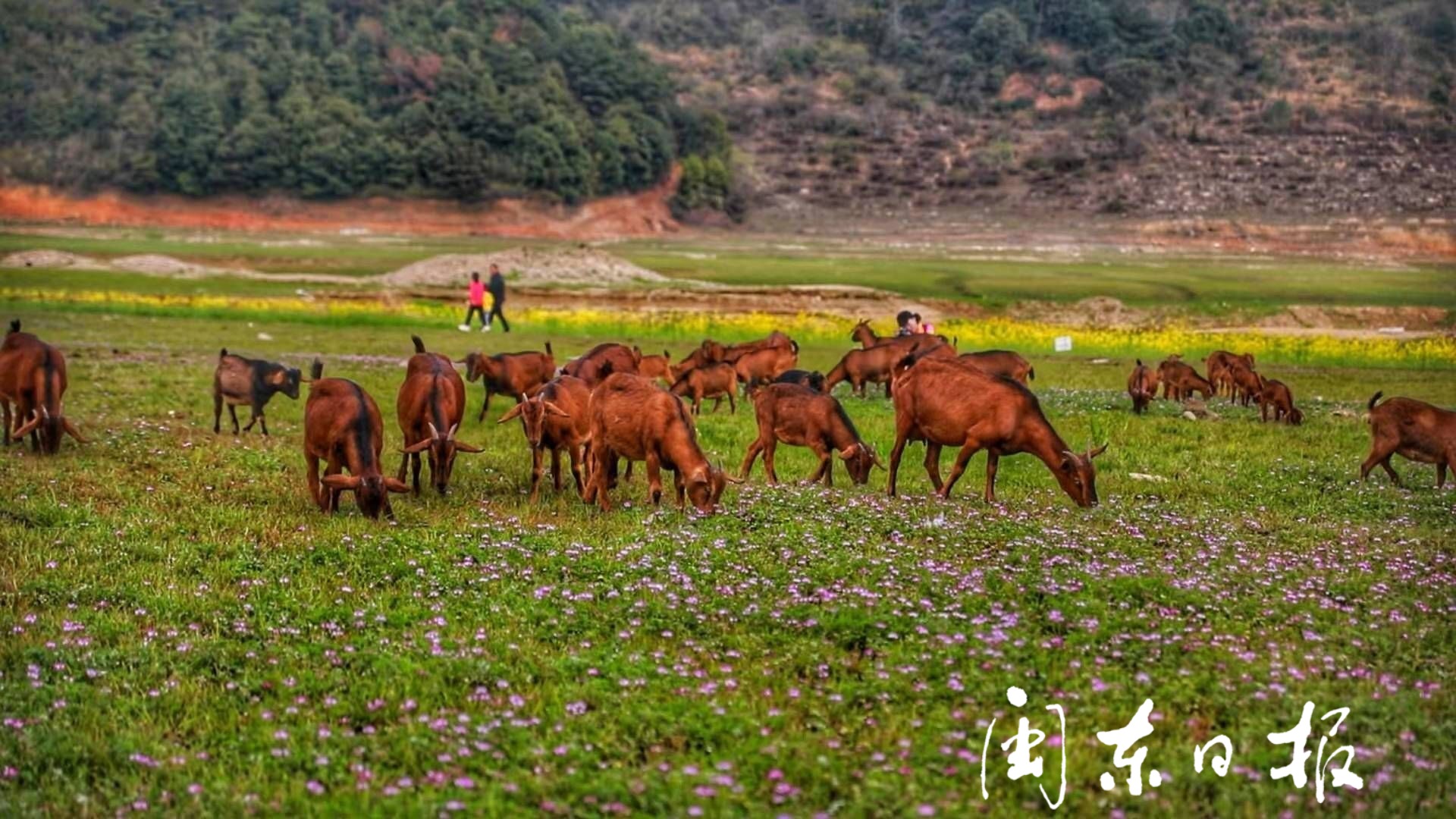 成群的牛羊在草場上時而悠閑地散步、時而低頭啃食鮮嫩的青草,對人們靠近拍照也毫不害怕。