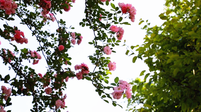 當(dāng)微風(fēng)徐徐吹來,這滿墻的薔薇輕輕搖曳,淡淡花香沁人心脾。