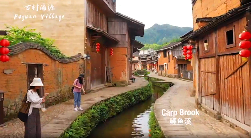 鯉魚溪源于海拔1448米的紫云山麓,匯集數(shù)十條山澗之水從上而下輕撫過浦源村,峰回水轉(zhuǎn),四面八方繞村緩緩傾瀉,周遭是最令人歡喜的古樸式建筑風(fēng)。