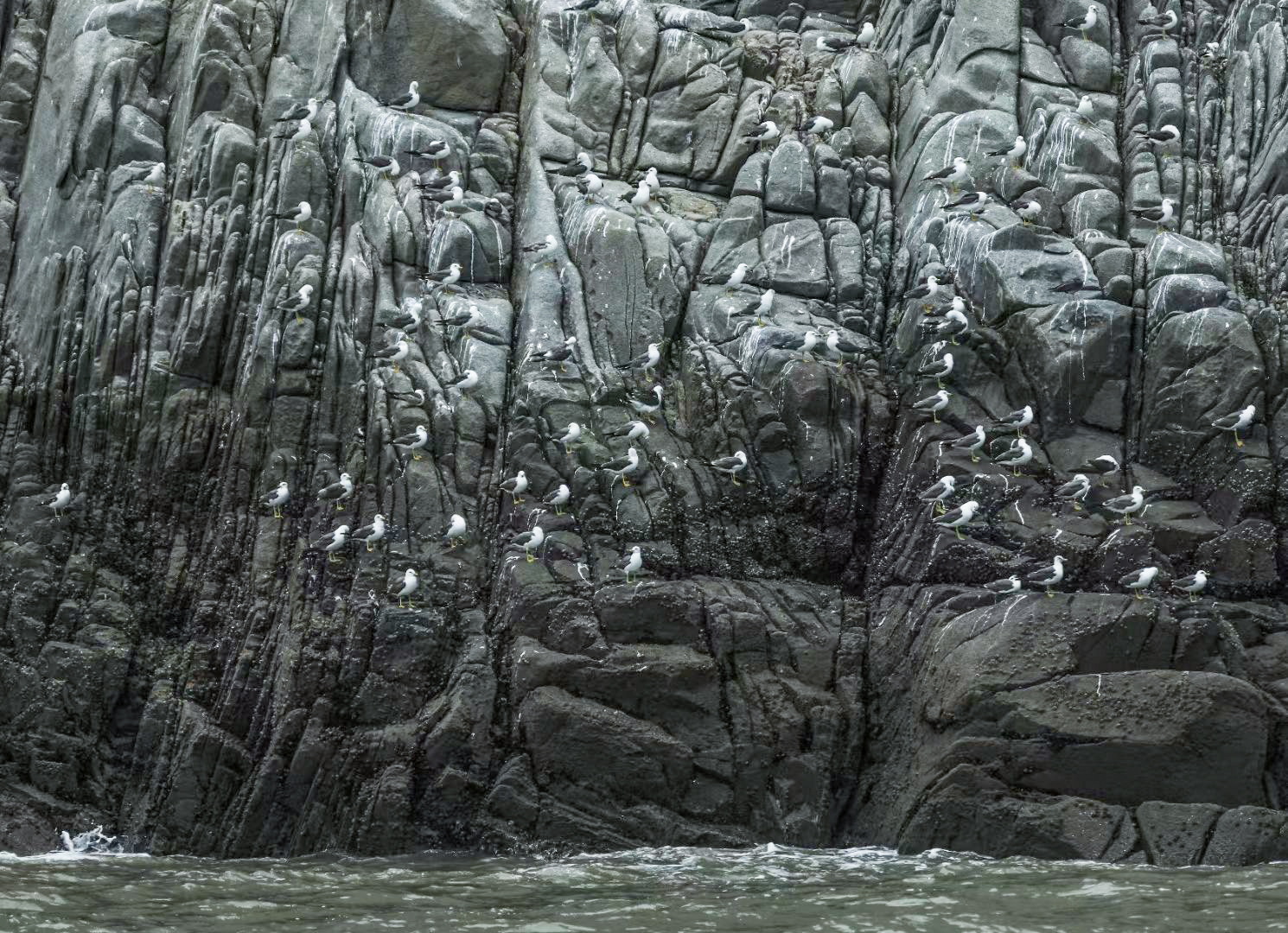 船還未靠岸,就聽(tīng)到上千只黑尾鷗、褐翅燕鷗歡快的叫喊聲。在海天之間、礁石之上,眾多的黑尾鷗和黃嘴白鷺旁若無(wú)人地覓食、嬉戲、休憩,巖縫中鳥(niǎo)巢也是鱗次櫛比。整座島嶼布滿了蘆葦、無(wú)花果樹(shù)和桑葚等植物,幾十只黃嘴白鷺披著一身乳白色的羽毛高傲站立在60米外的灌木叢上,與我們遠(yuǎn)遠(yuǎn)對(duì)望。