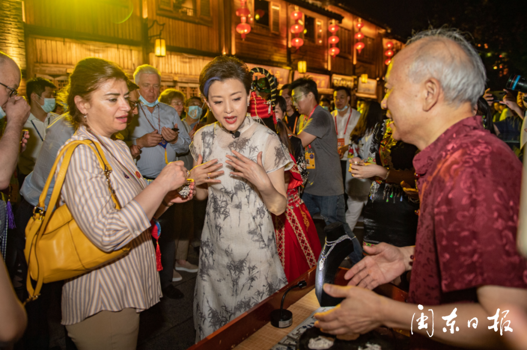 臺海網(wǎng)7月21日訊 據(jù)閩東日報報道 7月17日,第44 屆世界遺產(chǎn)大會重要組成部分——三坊七巷沉浸式演出《尋夢·坊巷》總策劃、前央視主持人楊瀾現(xiàn)身三坊七巷,向外賓介紹畬族銀器。