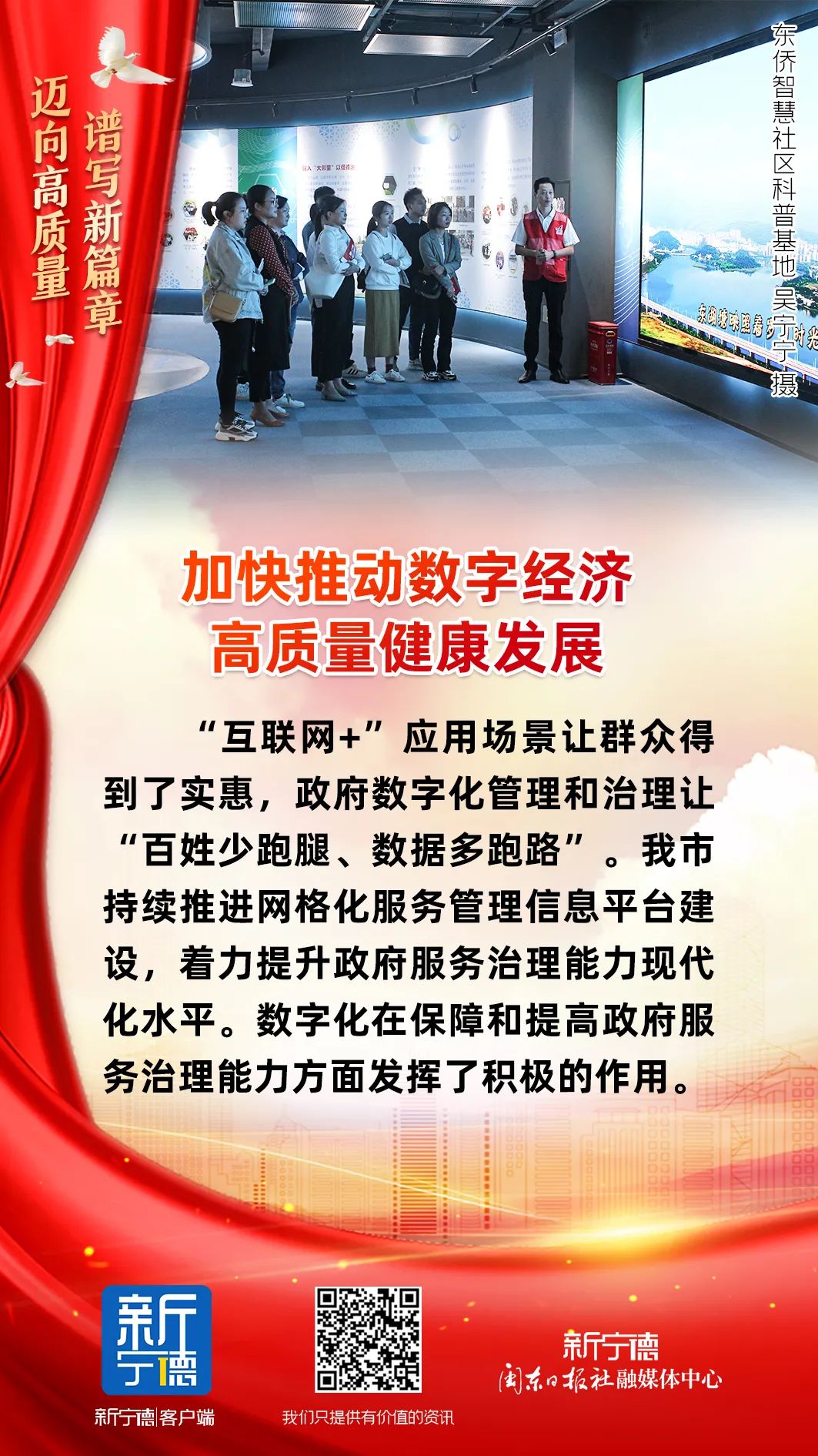 “我們深刻認(rèn)識(shí)到數(shù)字化是撬動(dòng)今后發(fā)展的最大變量,數(shù)字經(jīng)濟(jì)發(fā)展在構(gòu)筑城市競(jìng)爭(zhēng)新優(yōu)勢(shì)、搶占發(fā)展制高點(diǎn)中具有重要作用。下一步,我市將圍繞市第五次黨代會(huì)提出的構(gòu)建‘一核兩廊五軸’新格局及堅(jiān)持向數(shù)字要賦能‘實(shí)施數(shù)字經(jīng)濟(jì)壯大工程’的要求,借鑒浙江數(shù)字創(chuàng)新實(shí)踐經(jīng)驗(yàn),立足寧德實(shí)際,發(fā)揮四大主導(dǎo)產(chǎn)業(yè)的比較優(yōu)勢(shì),搭建全要素、全鏈條賦能平臺(tái),謀劃推進(jìn)一批數(shù)字領(lǐng)域的‘金娃娃’項(xiàng)目,加速數(shù)字經(jīng)濟(jì)與實(shí)體經(jīng)濟(jì)融合發(fā)展,為奮力譜寫(xiě)寧德篇章添磚助力。”黃海峰說(shuō)。