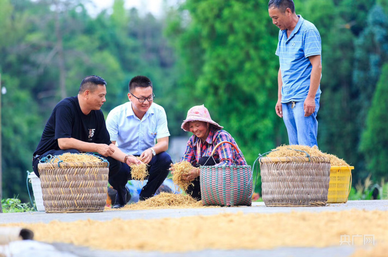 太子參迎來豐收,種植戶正在晾曬,臉上露出喜悅的笑容(央廣網(wǎng)發(fā) 城郊鄉(xiāng)人民政府供圖)