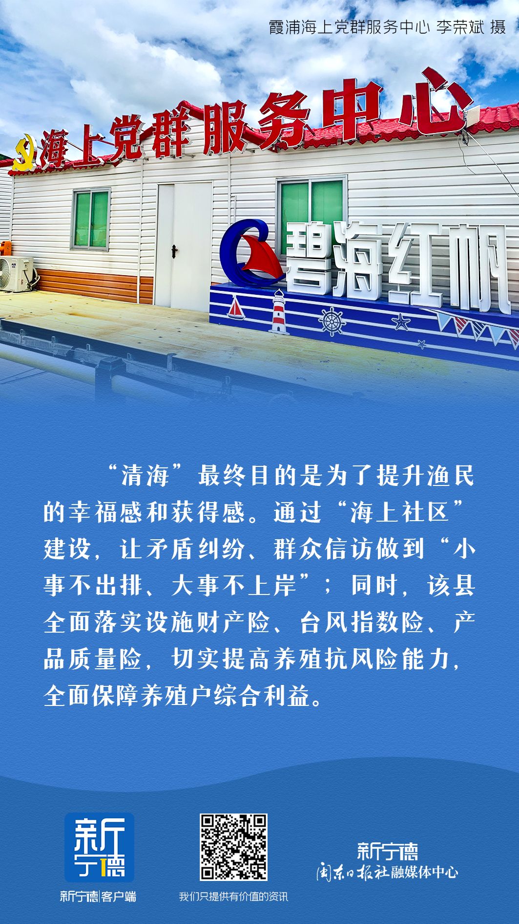 “清海”最終目的是為了提升漁民的幸福感和獲得感。通過(guò)“海上社區(qū)”建設(shè),兩年來(lái),養(yǎng)殖戶(hù)大部分矛盾糾紛、群眾信訪(fǎng)做到“小事不出排、大事不上岸”。目前,該縣已建立7個(gè)“海上社區(qū)”并投入使用,分別位于溪南七星、下滸雷江、沙江圍江、北壁四門(mén)橋、鹽田滸嶼澳、長(zhǎng)春埕塢、三沙割山島等海域。同時(shí),該縣全面落實(shí)設(shè)施財(cái)產(chǎn)險(xiǎn)、臺(tái)風(fēng)指數(shù)險(xiǎn)、產(chǎn)品質(zhì)量險(xiǎn),切實(shí)提高養(yǎng)殖抗風(fēng)險(xiǎn)能力,全面保障養(yǎng)殖戶(hù)綜合利益。
