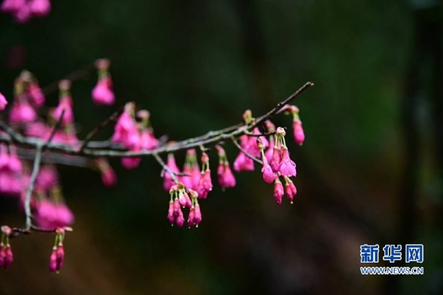 29日,細(xì)雨綿綿,莆田仙游九鯉湖景區(qū)步行棧道兩側(cè)種植的山櫻花盛開。新華網(wǎng)發(fā)(沈偉彬 攝)