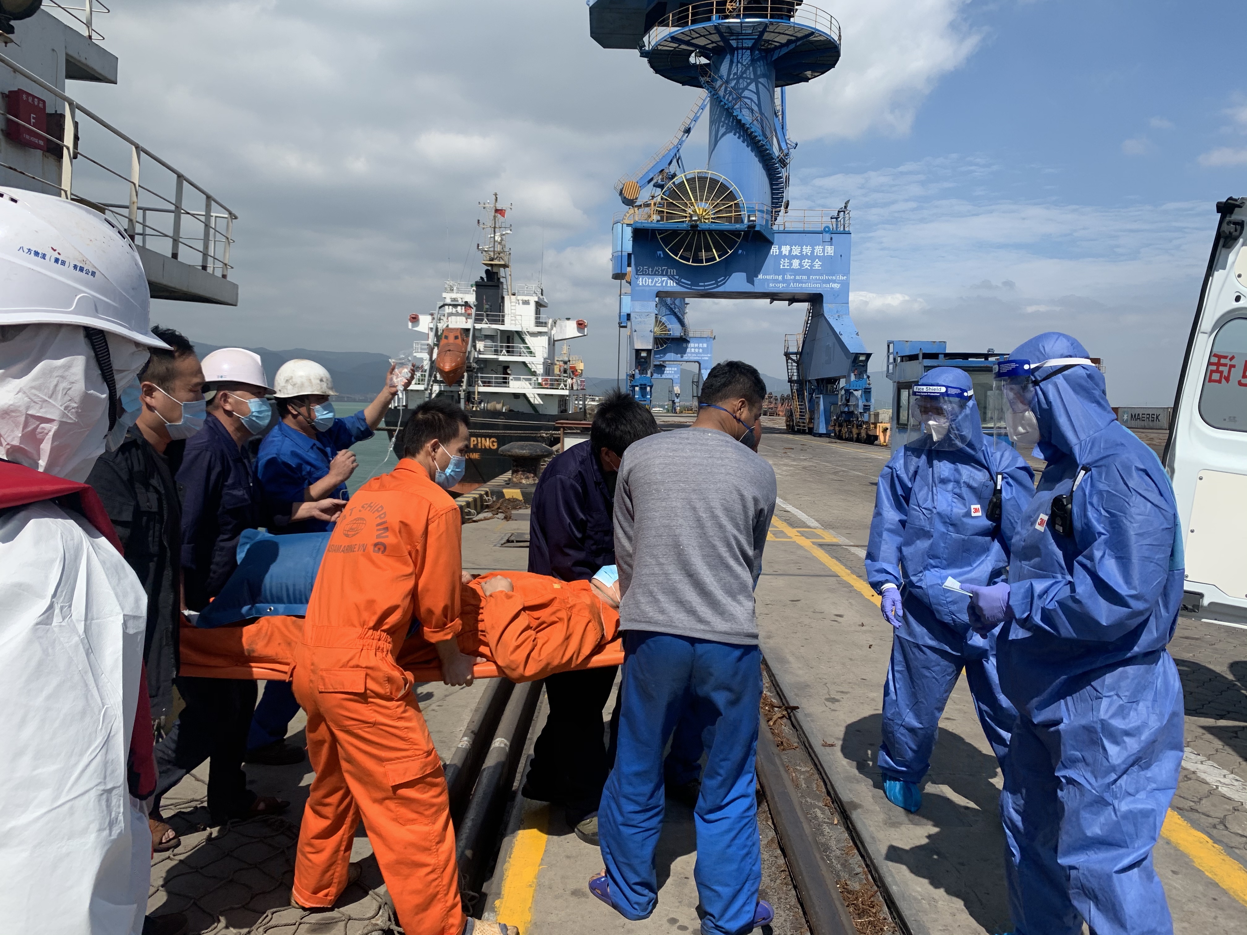 準(zhǔn)備離境之際,該輪大副謝某在進(jìn)行清倉作業(yè)時(shí),不慎被船上移動的吊機(jī)擊中,導(dǎo)致后背兩根肋骨骨折,傷勢嚴(yán)重。負(fù)責(zé)監(jiān)護(hù)的莆田出入境邊防檢查站執(zhí)勤二隊(duì),立即啟動聯(lián)防聯(lián)控機(jī)制,第一時(shí)間抵達(dá)碼頭,開通生命救助綠色通道,助重傷船員及時(shí)下船登陸,送往秀嶼區(qū)醫(yī)院搶救。