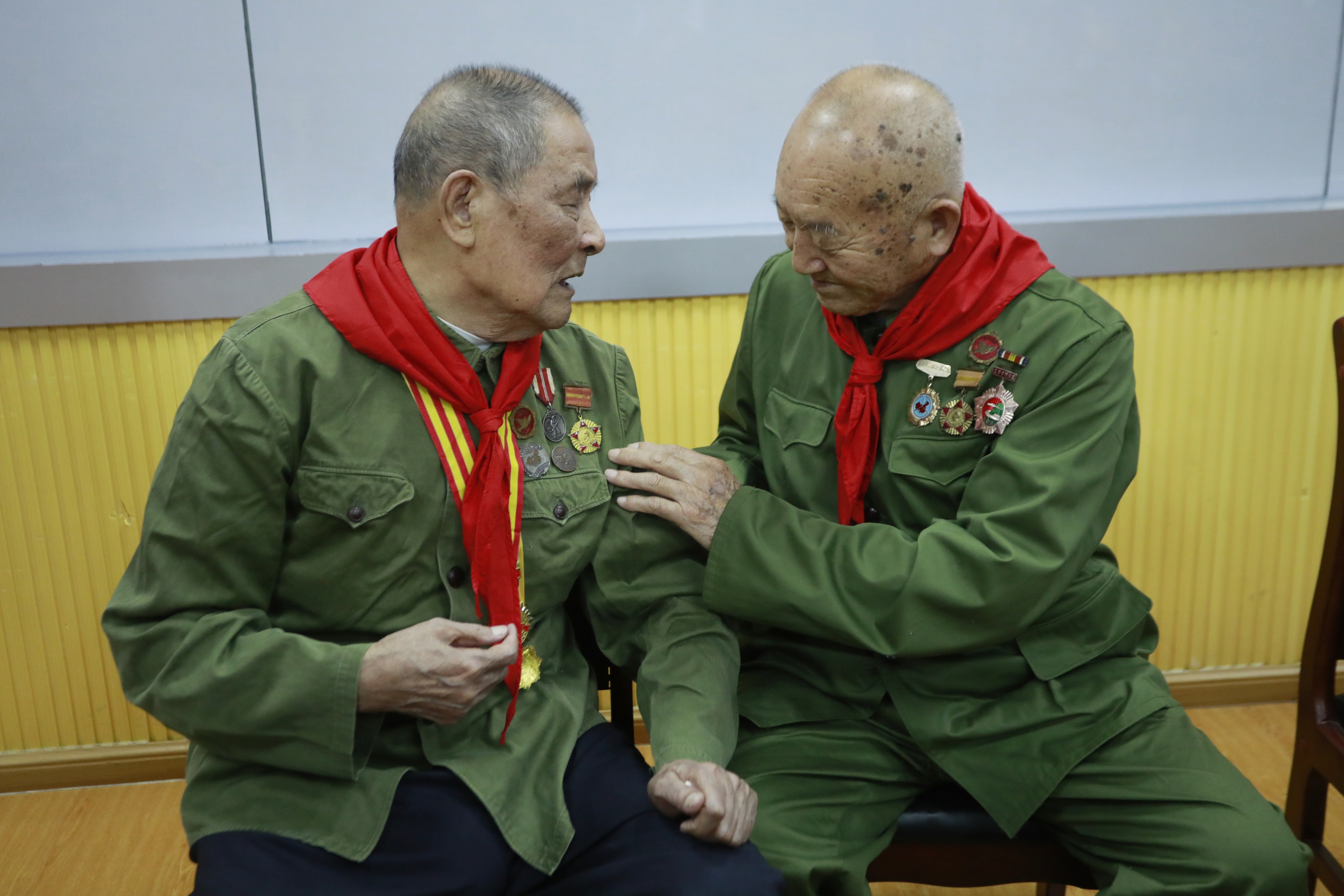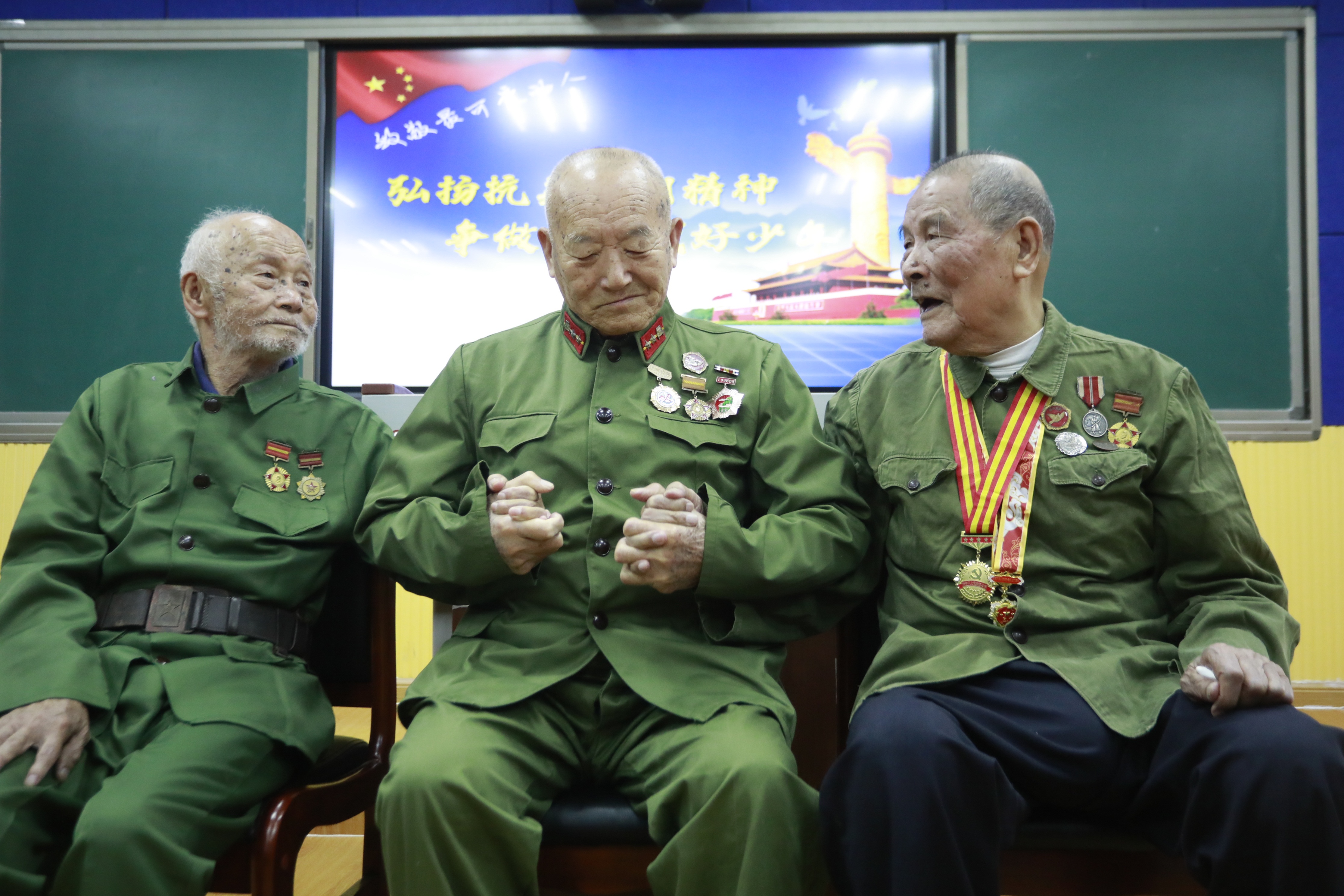 臺(tái)海網(wǎng)10月26日訊 福建日?qǐng)?bào)APP—新福建報(bào)道 在仙游縣城東中心小學(xué),94歲老人林金魁拄著拐杖,顫顫巍巍地坐下,身旁,84歲的李養(yǎng)賢和92歲的黃承炳緊握著彼此的手,叫了一句:“戰(zhàn)友”,老人們的眼眶里都噙著淚。