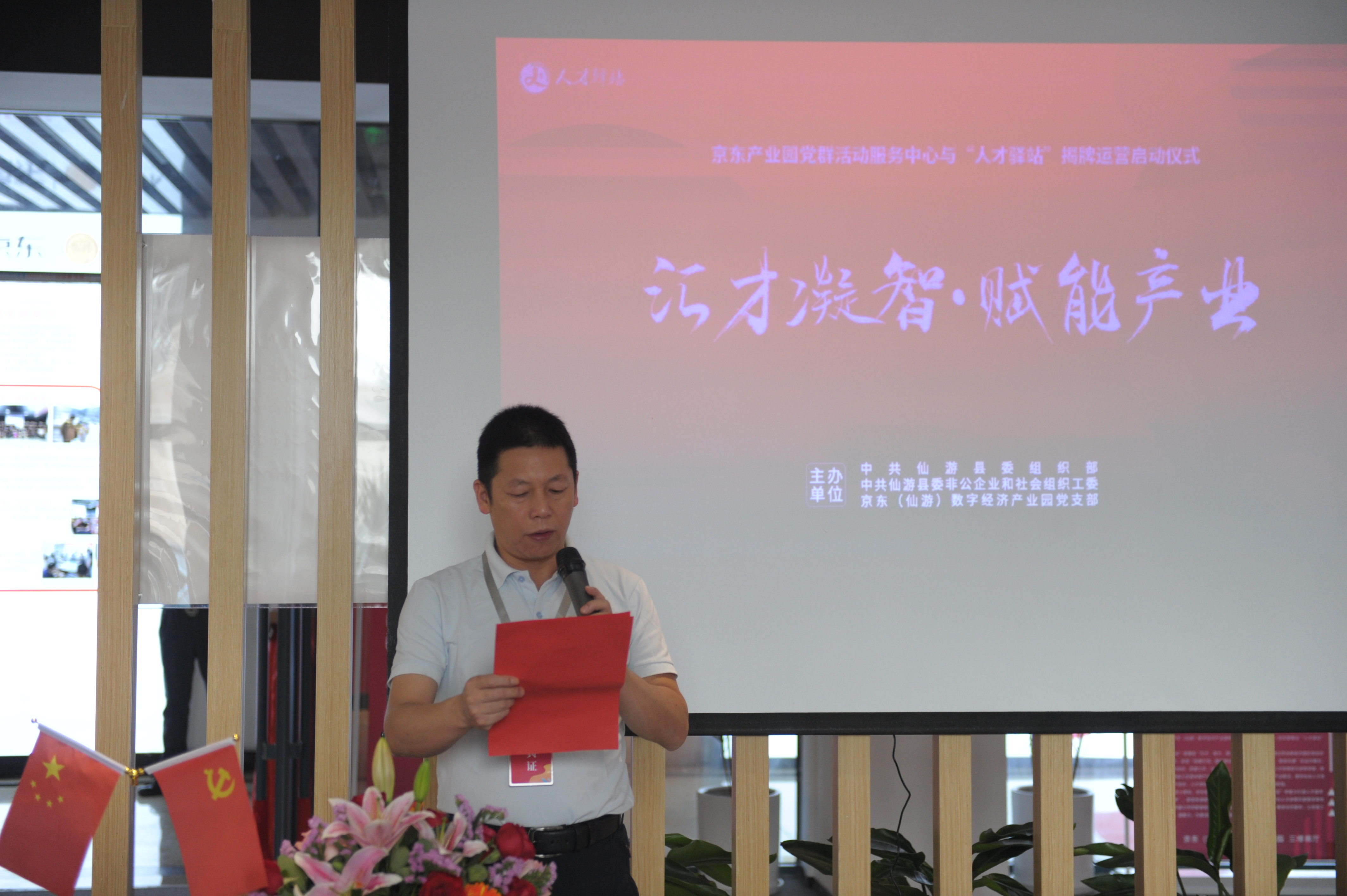 仙游縣工藝辦主任黃杰在儀式上致辭,他說,產(chǎn)業(yè)經(jīng)濟的不斷優(yōu)化提升,關(guān)鍵靠創(chuàng)新,而人才是創(chuàng)新的核心要素,希望黨群活動服務(wù)中心和“人才驛站”的建成,進一步凝聚人才引進培育合力,激發(fā)人才創(chuàng)新創(chuàng)業(yè)活力。同時,希望京東產(chǎn)業(yè)園著力把這個園地耕耘好、維護好、使用好,使其更緊密的聯(lián)結(jié)政府、京東與企業(yè)的共同合作發(fā)展,成為黨建工作和人才工作的一面亮麗的旗幟,為推進產(chǎn)業(yè)園增速發(fā)展保駕護航,為仙游產(chǎn)業(yè)經(jīng)濟高質(zhì)量發(fā)展超越添磚加瓦。
