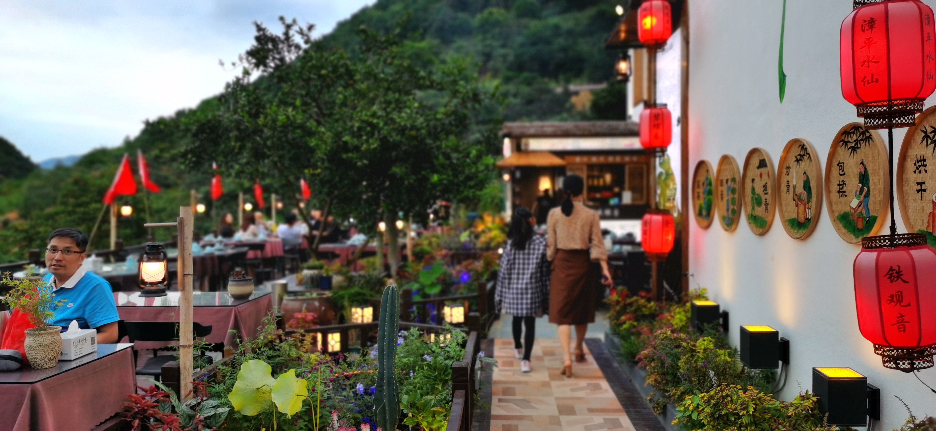 位于天馬山西側、東圳水庫東岸的松峰村,是一個只有1600多人口的小村莊。在這里,土木結構、懸山頂、燕尾脊,富有莆仙民居特色的農村老房子隨處可見。兩年多前,利用當地閑置農房打造的半浮生茶院亮相松峰村,成為莆田首家山水實景茶院。依山傍水,風景秀麗,獨具特色的半浮生茶院很快成為一處現代都市人的網紅打卡之地。