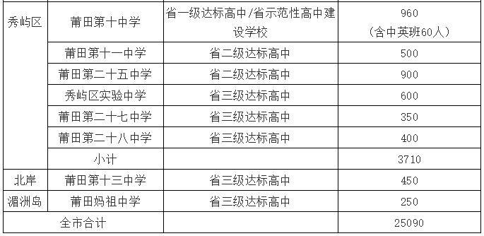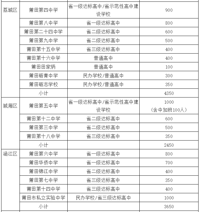 根據(jù)全市2021屆初中畢業(yè)班情況和各普通高中辦學(xué)條件,近日,莆田市教育局公布2021年秋季普通高中招生計劃。