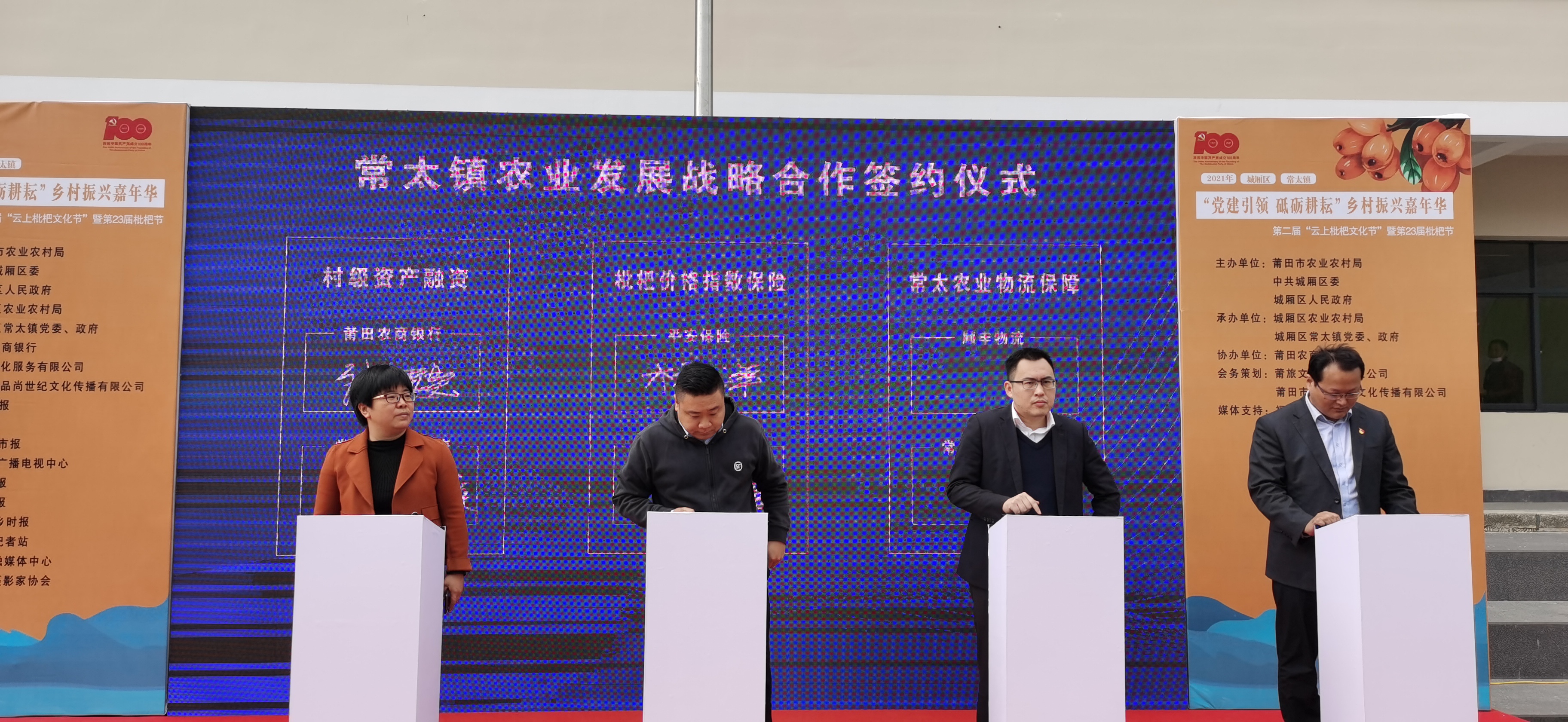 農(nóng)業(yè)產(chǎn)業(yè)發(fā)展離不開金融“活水”的支持?,F(xiàn)場,莆田農(nóng)商銀行與常太鎮(zhèn)簽訂戰(zhàn)略合作協(xié)議,在三農(nóng)、小微、林業(yè)等業(yè)務領(lǐng)域深化合作,支持常太“兩點一帶”建設,為合作社社員提供信貸支持,支持枇杷產(chǎn)業(yè)鏈發(fā)展,支持旅游觀光產(chǎn)業(yè)發(fā)展,實現(xiàn)村級資產(chǎn)融資戰(zhàn)略合作,打通金融助力鄉(xiāng)村振興“最后一公里”。平安財險為枇杷改良換種的果農(nóng)量身打造價格指數(shù)保險產(chǎn)品,切實保障改良果農(nóng)收益。此外,順豐快遞也針對常太枇杷市場推出大幅度快遞費用打折優(yōu)惠,讓利果農(nóng),提升常太枇杷市場競爭力。
