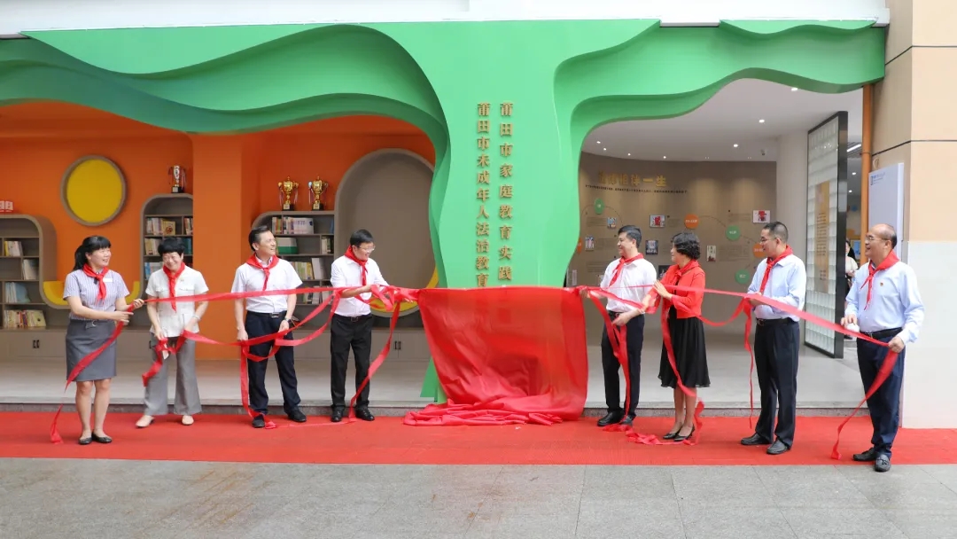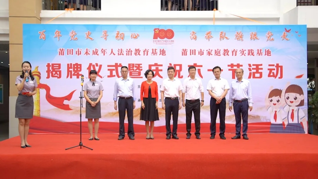 莆田市委副書(shū)記、市長(zhǎng)李建輝、市委副書(shū)記朱子君、副市長(zhǎng)陳惠黔、副市長(zhǎng)胡國(guó)防、市檢察院檢察長(zhǎng)許志鵬、市婦聯(lián)主席莊懷冰、市教育局局長(zhǎng)卓金賢、市第二實(shí)驗(yàn)小學(xué)校長(zhǎng)龔朱紅共同為莆田市未成年人法治教育基地、家庭教育實(shí)踐基地揭牌。