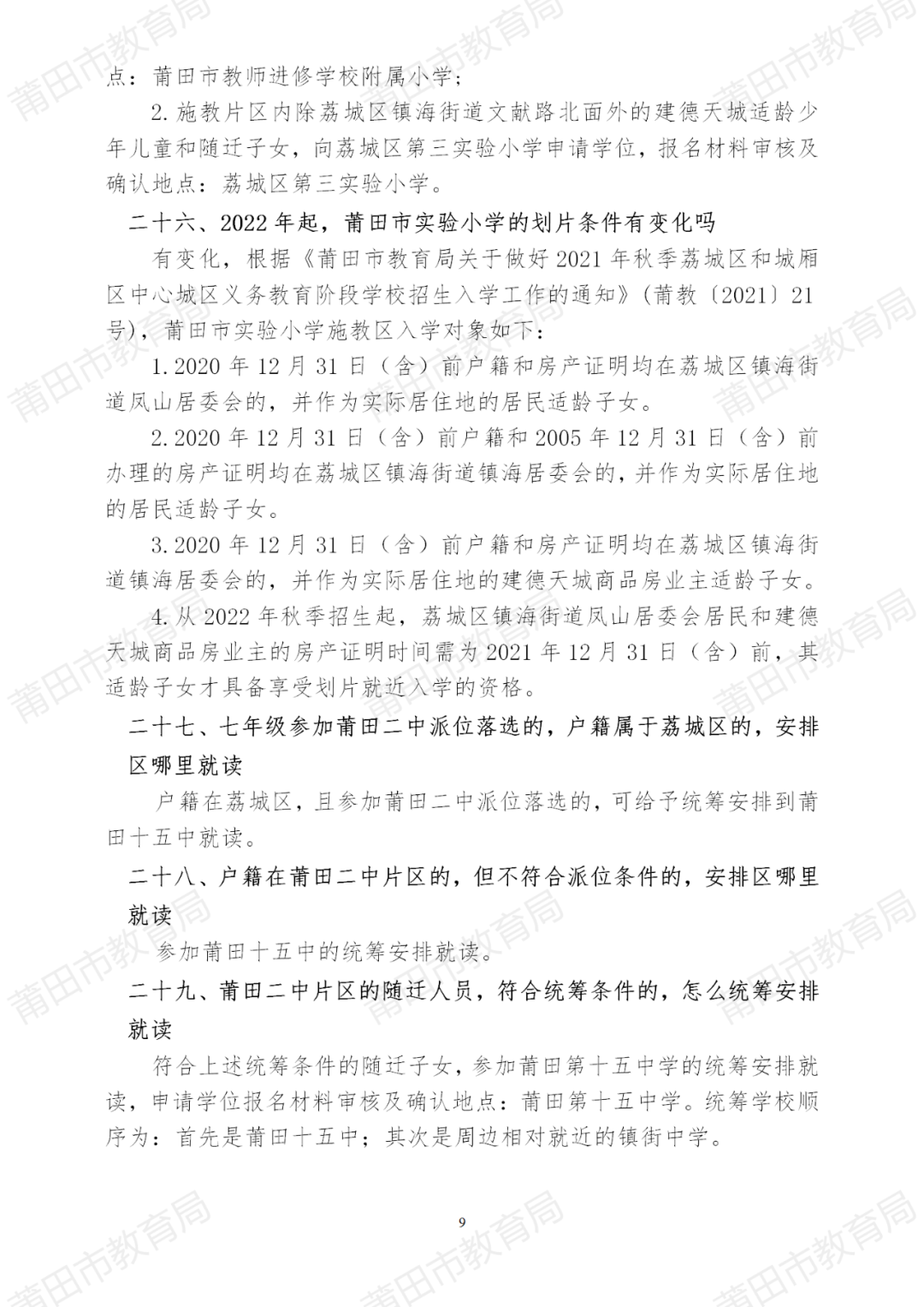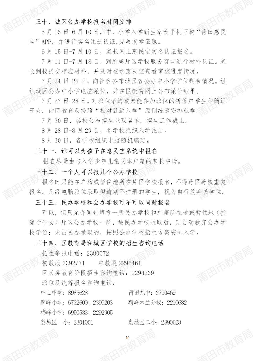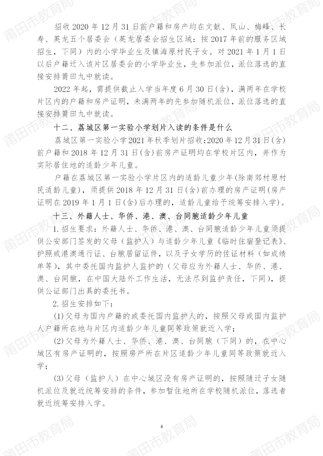荔城區(qū)義務(wù)教育階段公辦學(xué)校