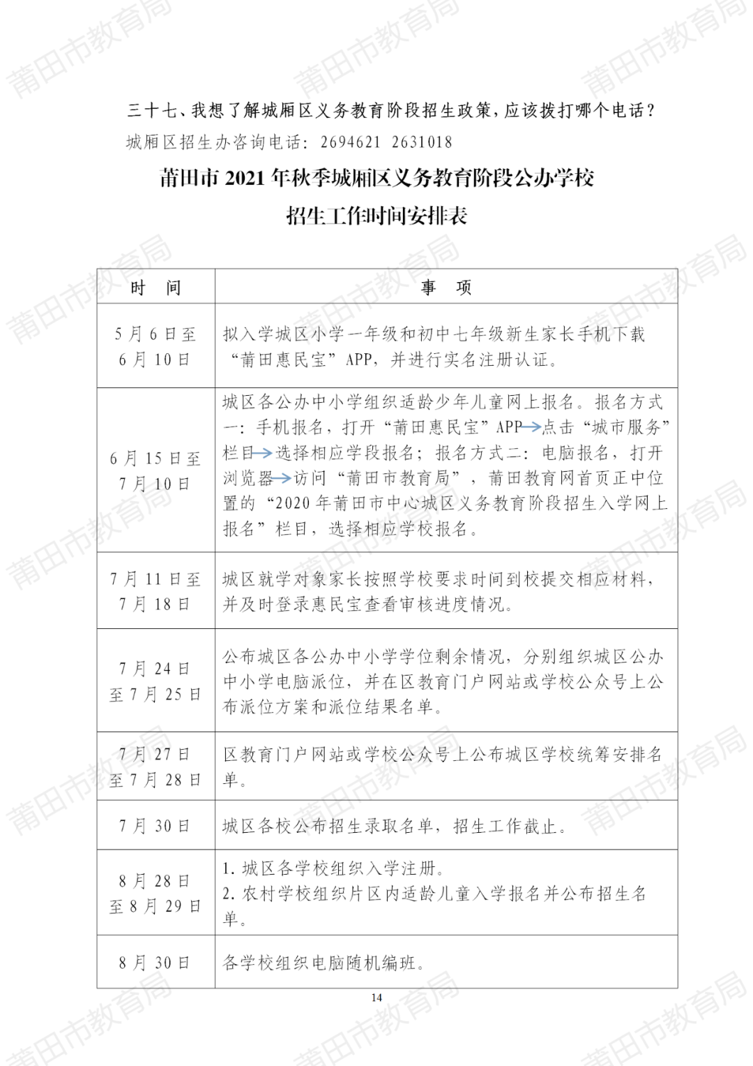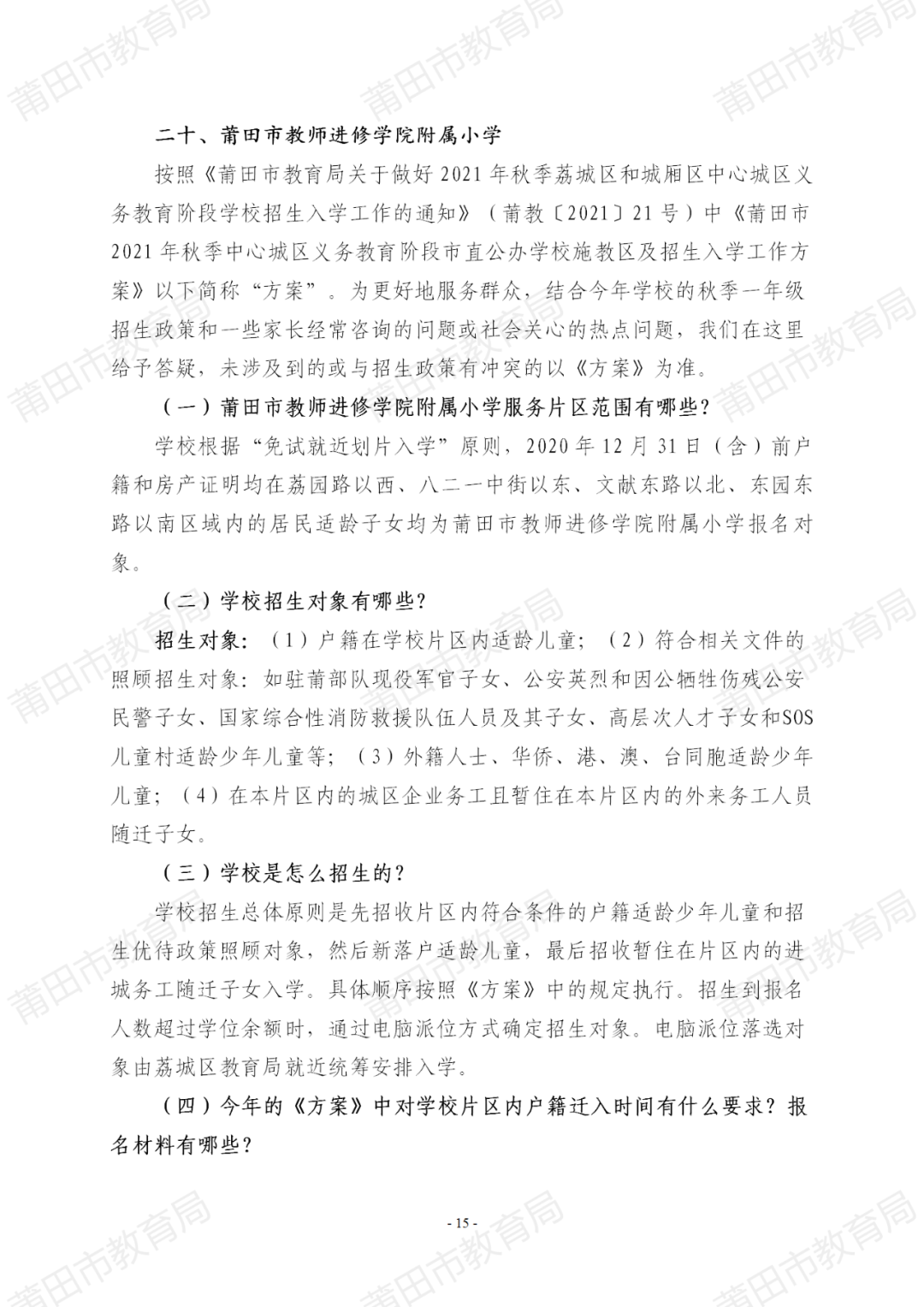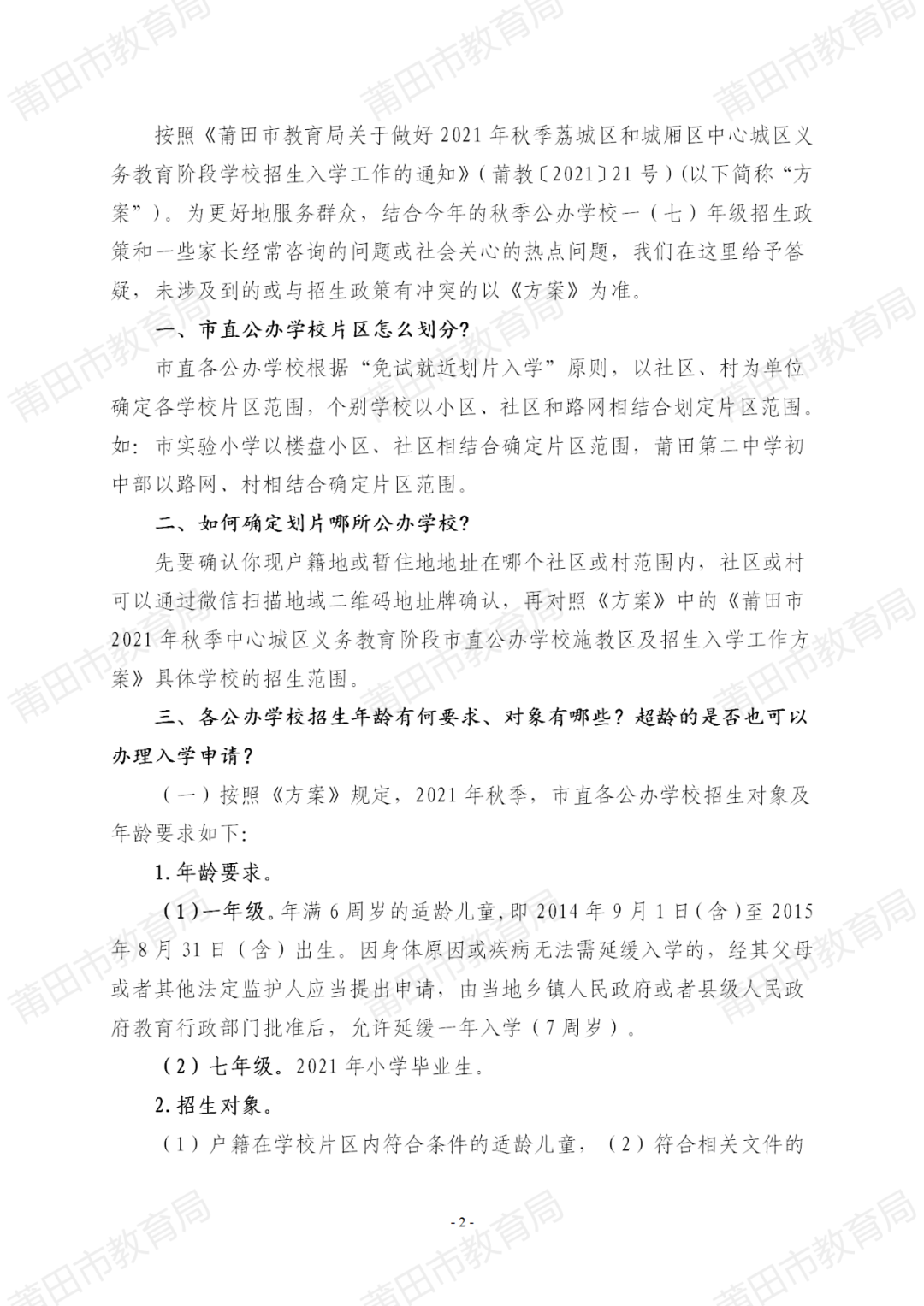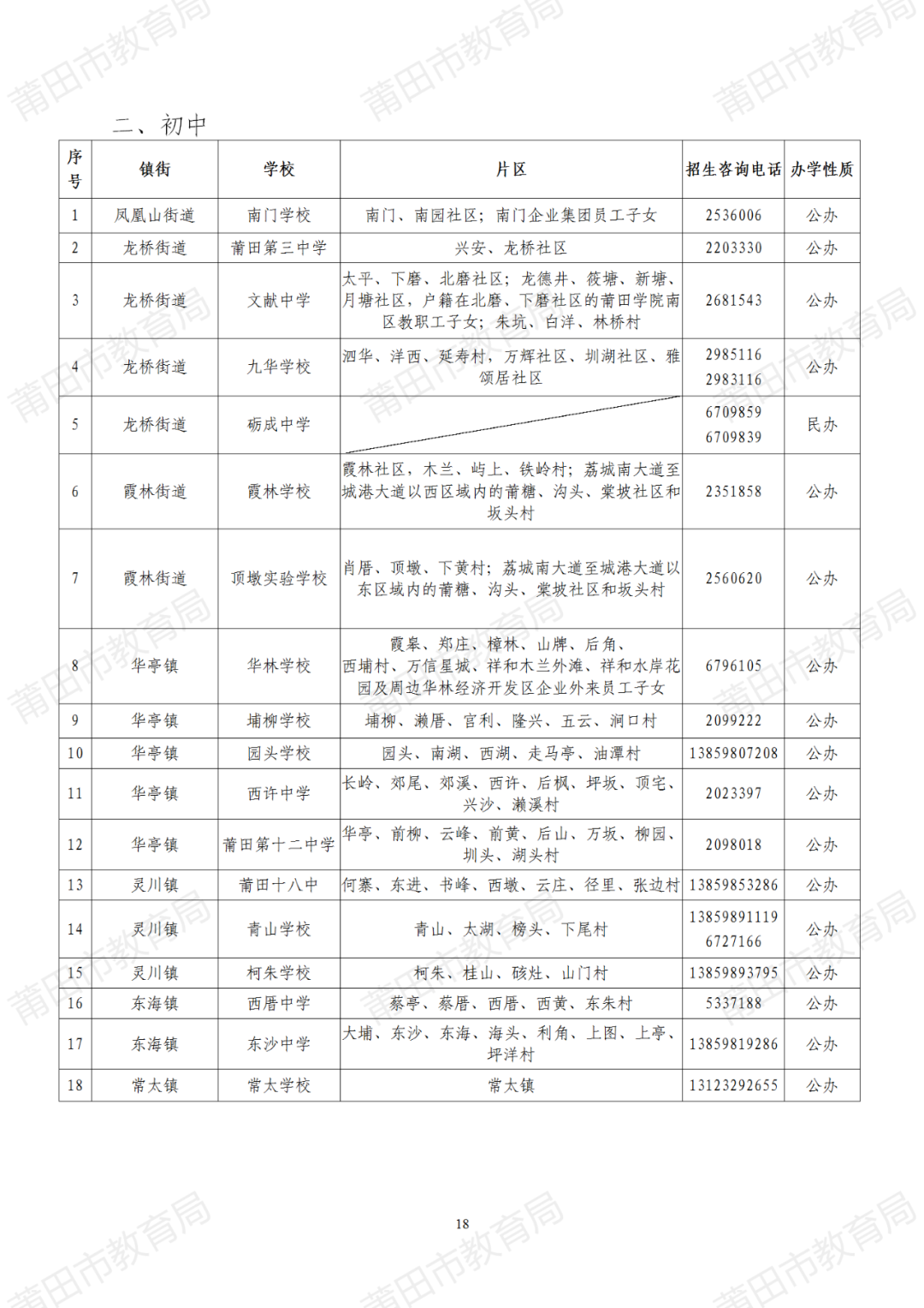 莆田市市直義務(wù)教育階段公辦學(xué)校