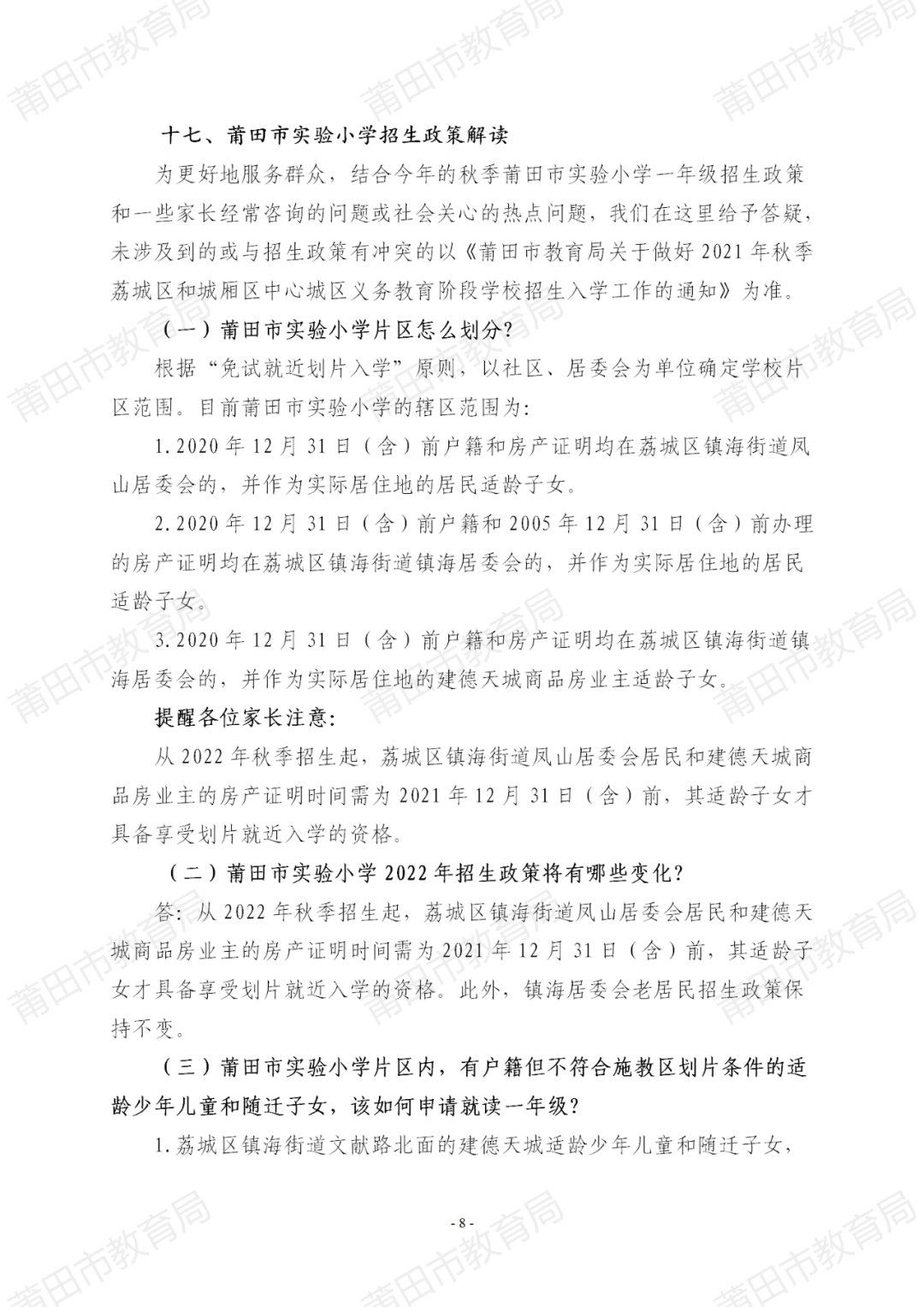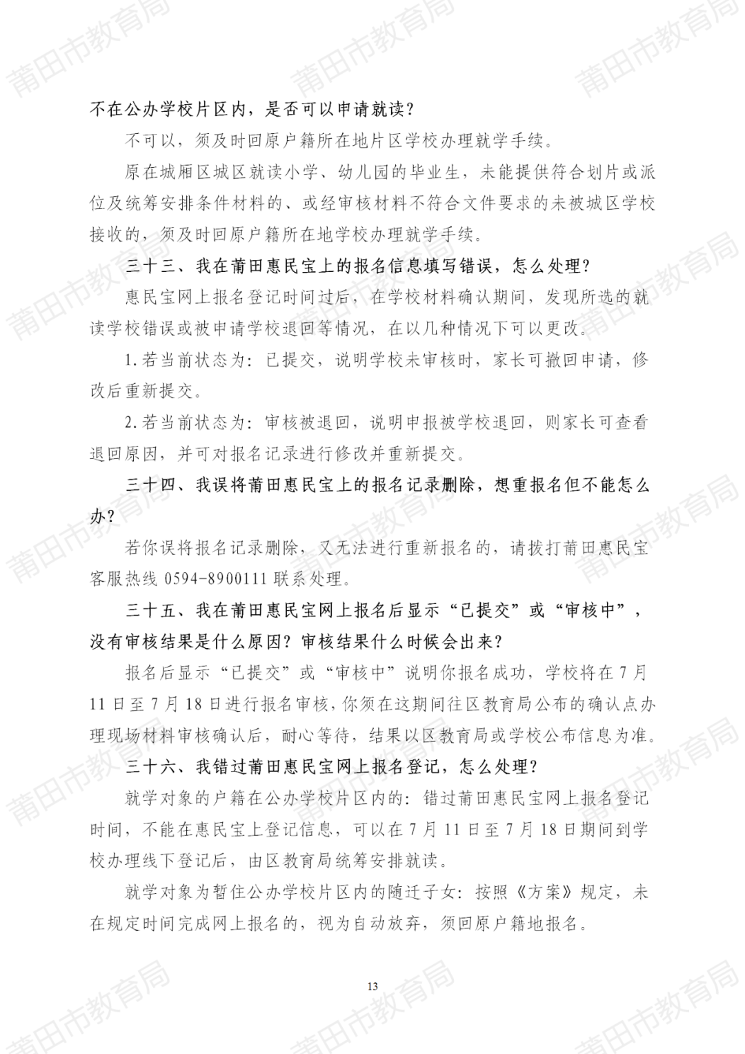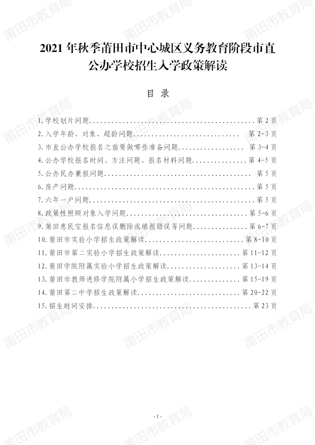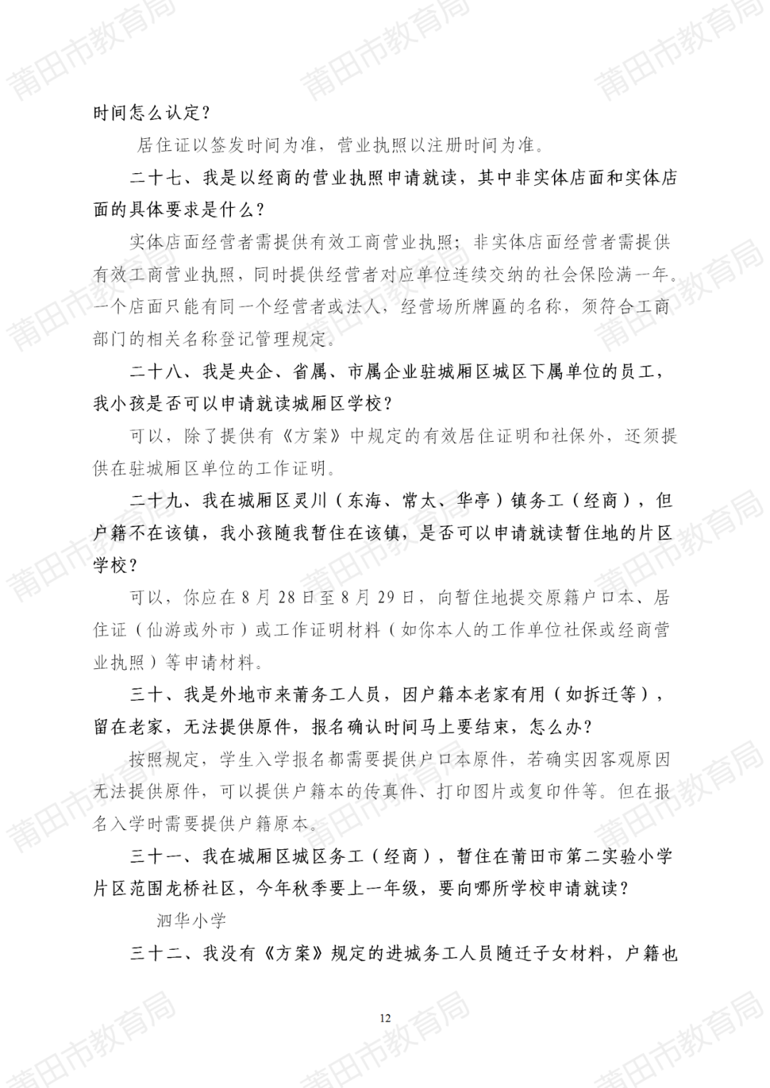 莆田市市直義務(wù)教育階段公辦學(xué)校