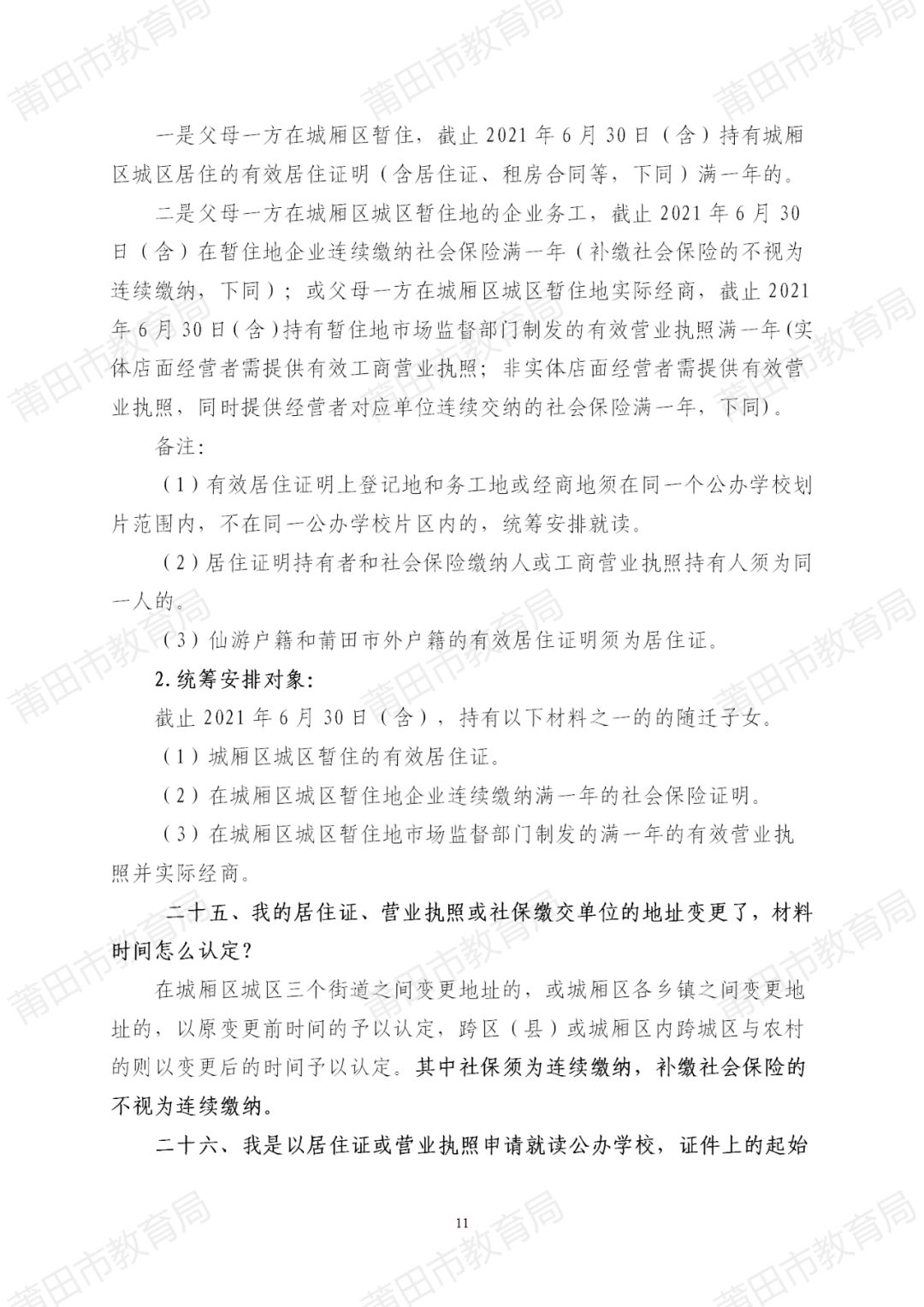 ⊙城廂區(qū)義務(wù)教育階段公辦學(xué)校