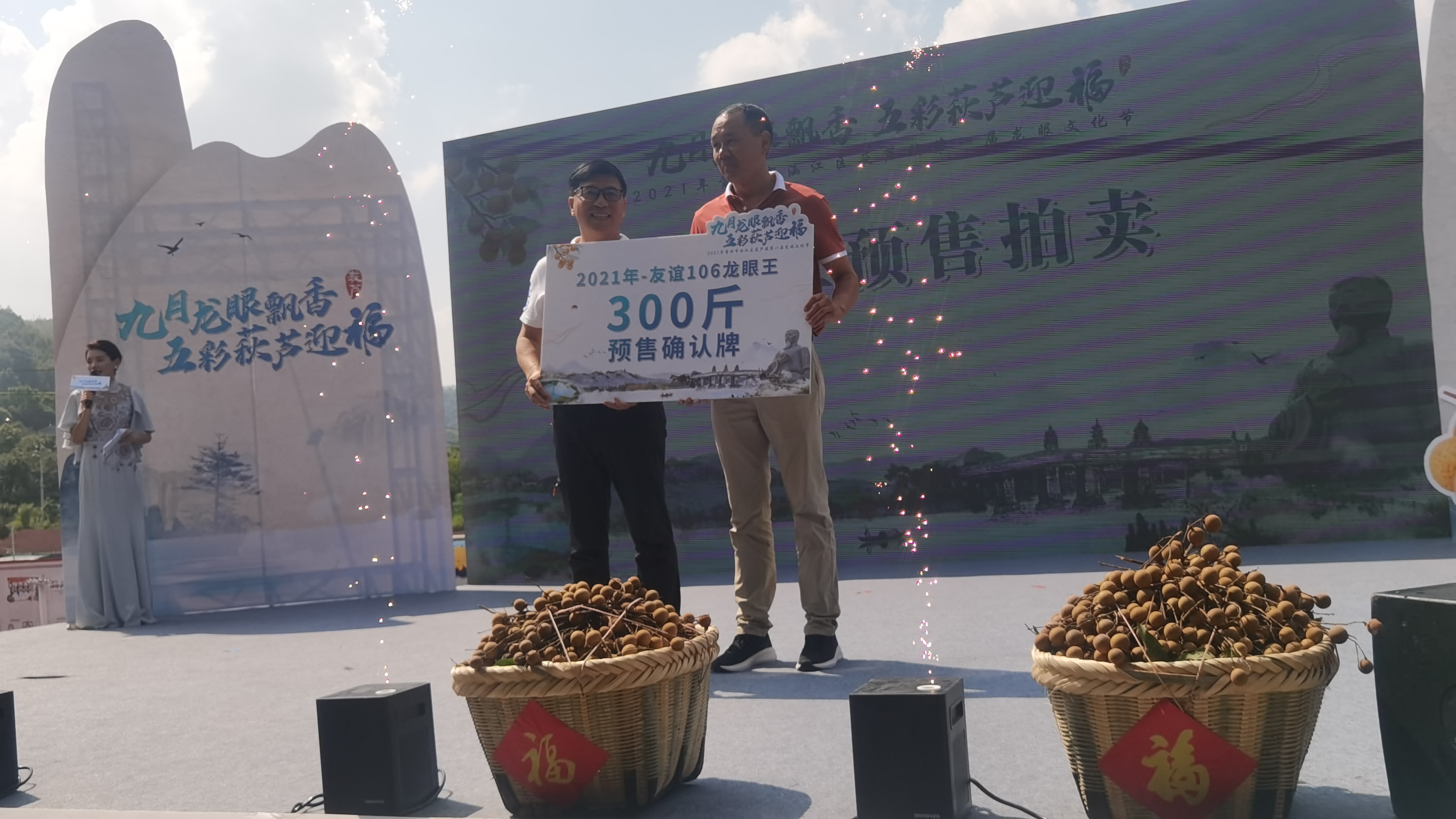 本屆萩蘆鎮(zhèn)龍眼文化節(jié)創(chuàng)新引入預(yù)售競拍環(huán)節(jié),以106龍眼王種植戶許春華種植的300斤龍眼王為標(biāo)的舉行預(yù)售競拍,起拍價(jià)為15000元。經(jīng)過現(xiàn)場多輪競拍,最終由劉先生以19000元的競拍價(jià)拍得。“106龍眼又大又甜,等采摘后分給親戚朋友們品嘗,也為支持家鄉(xiāng)龍眼品牌發(fā)展貢獻(xiàn)一份力。”劉先生對記者說。