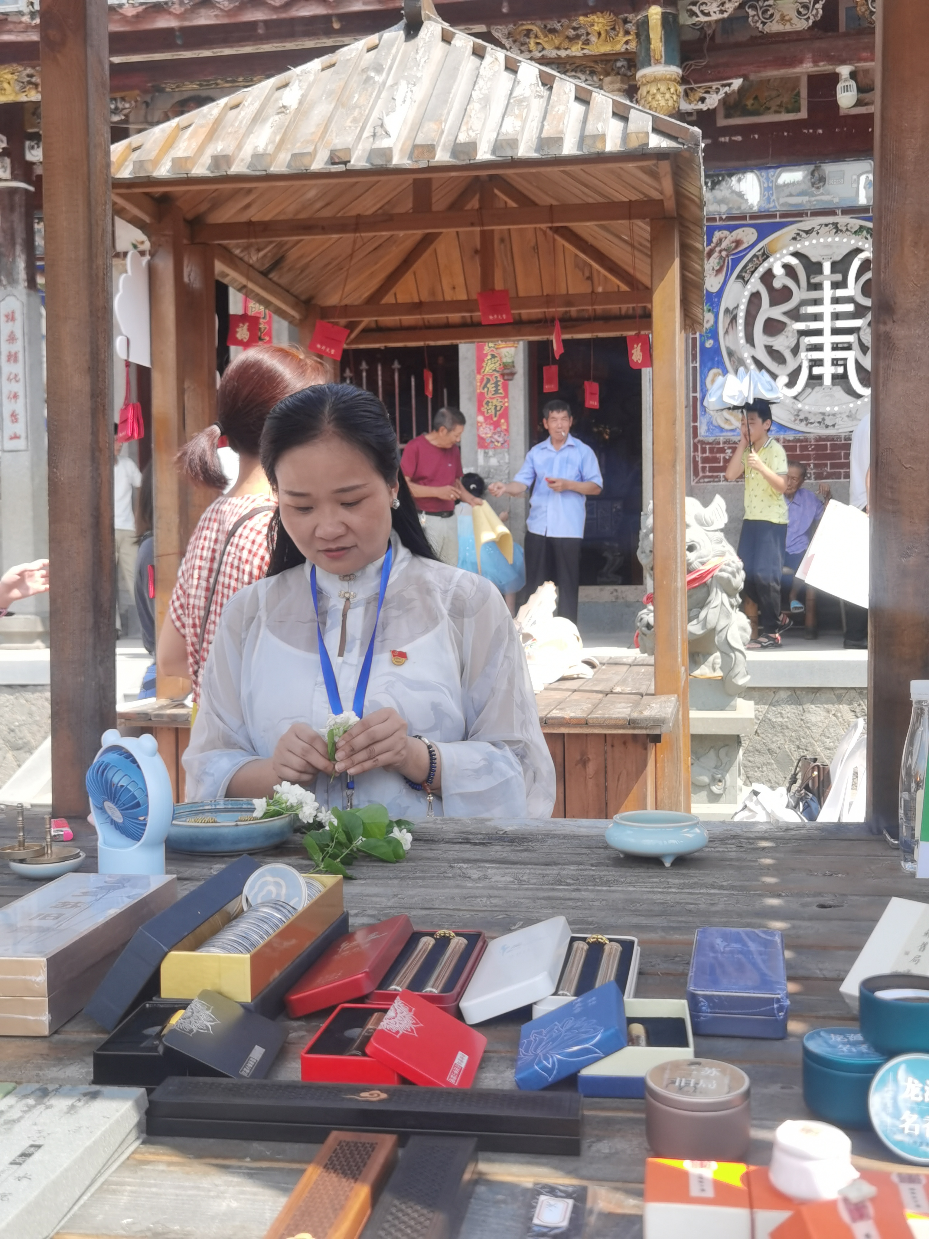 活動(dòng)現(xiàn)場特別設(shè)置了帶貨平臺直播間,將萩蘆龍眼介紹給更多網(wǎng)友;書畫家現(xiàn)場揮毫潑墨送“福”氣;漢式文化聚“靈”氣,投壺游戲、漢服展示吸引眾人眼球;五“福”燈DIY展現(xiàn)傳統(tǒng)文化;還有莆仙糖畫、莆仙香社、莆仙文創(chuàng)等等現(xiàn)場助力文化節(jié),共同詮釋了萩山集瑞,蘆水長流的詩意與浪漫。