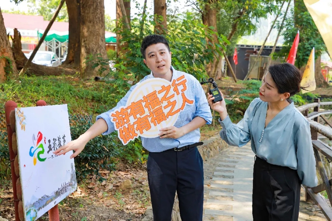 在主會場活動(dòng)結(jié)束后,崇福村第一書記邀請主持人同游崇福村,推介游覽了時(shí)來運(yùn)轉(zhuǎn)、迎福橋、秋月湖等崇福美景,并介紹崇福村“福”文化。