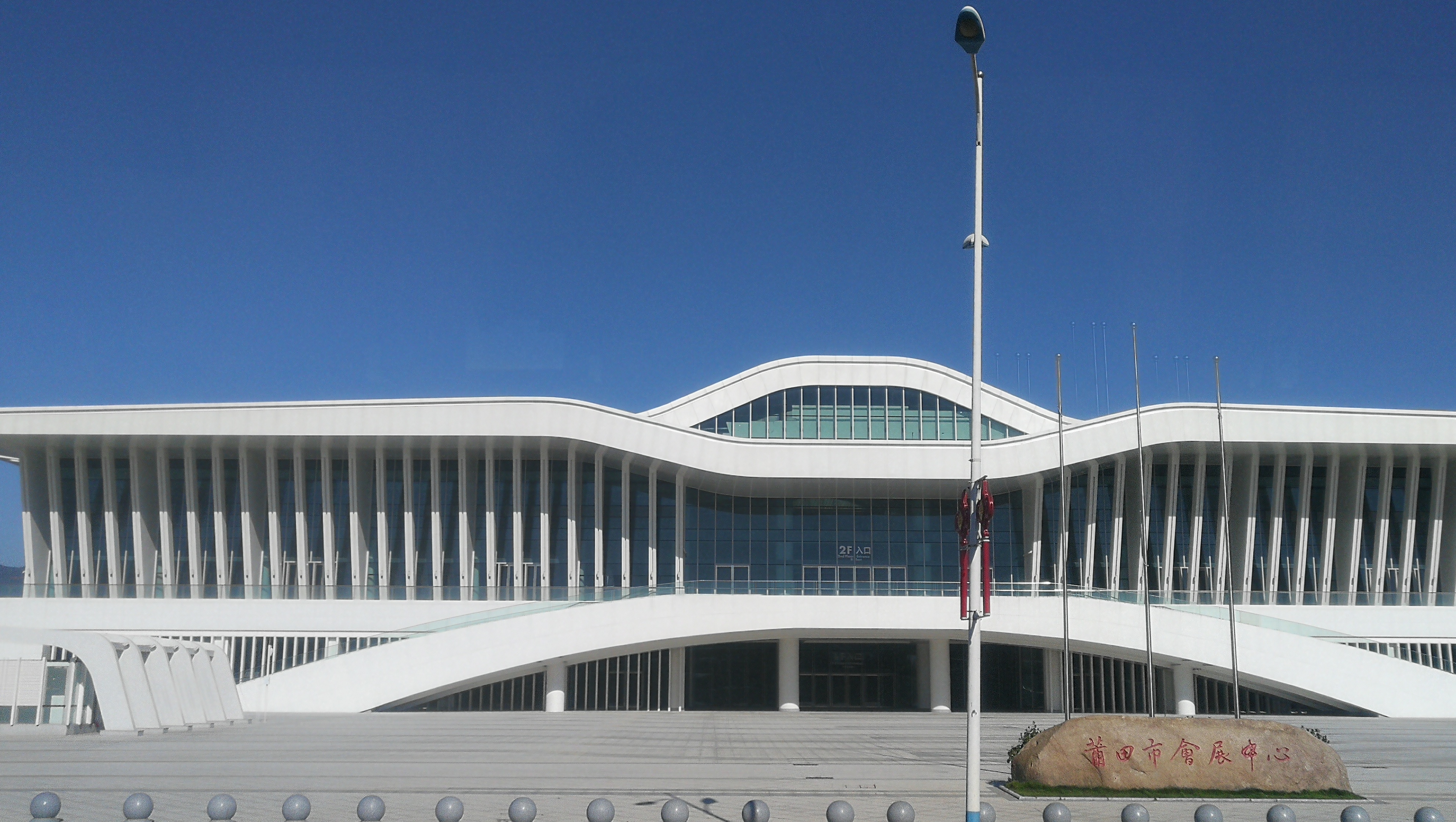 莆田會展中心位于莆田火車站南廣場,總用地面積52359平方米,總建筑面積共109377平方米,是目前莆田市單體建筑面積最大的地標(biāo)性建筑。