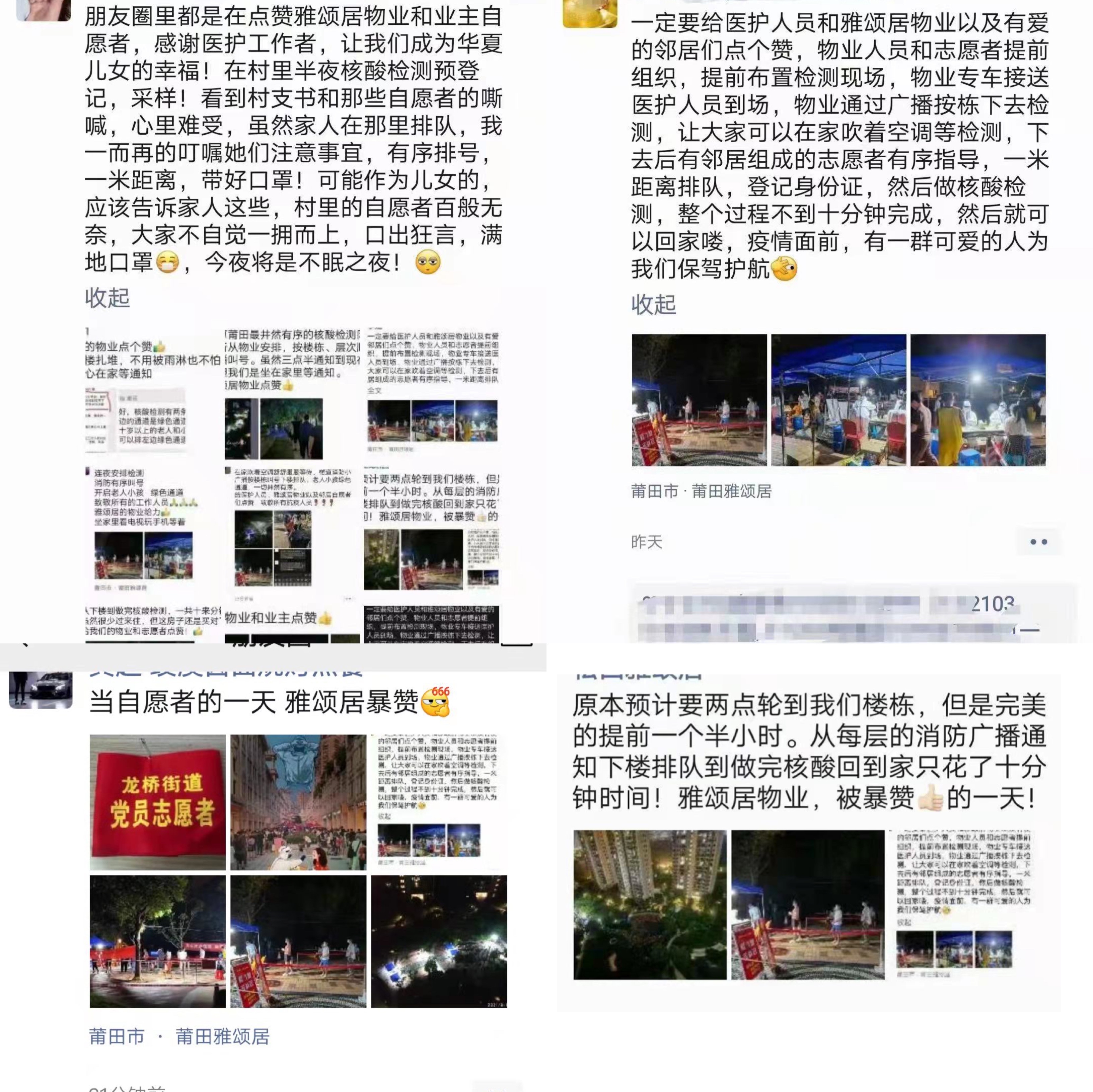 布置核酸檢測點(diǎn)、采集信息、掃碼、測溫、維持現(xiàn)場秩序,按照莆田市全市全員核酸檢測的要求,雅頌居小區(qū)黨支部迅速發(fā)動(dòng)社區(qū)黨員、業(yè)主志愿者,利用LED電子屏、懸掛橫幅、小喇叭及小區(qū)微信群,引導(dǎo)居民安全、有序、高效開展全員核酸檢測工作。