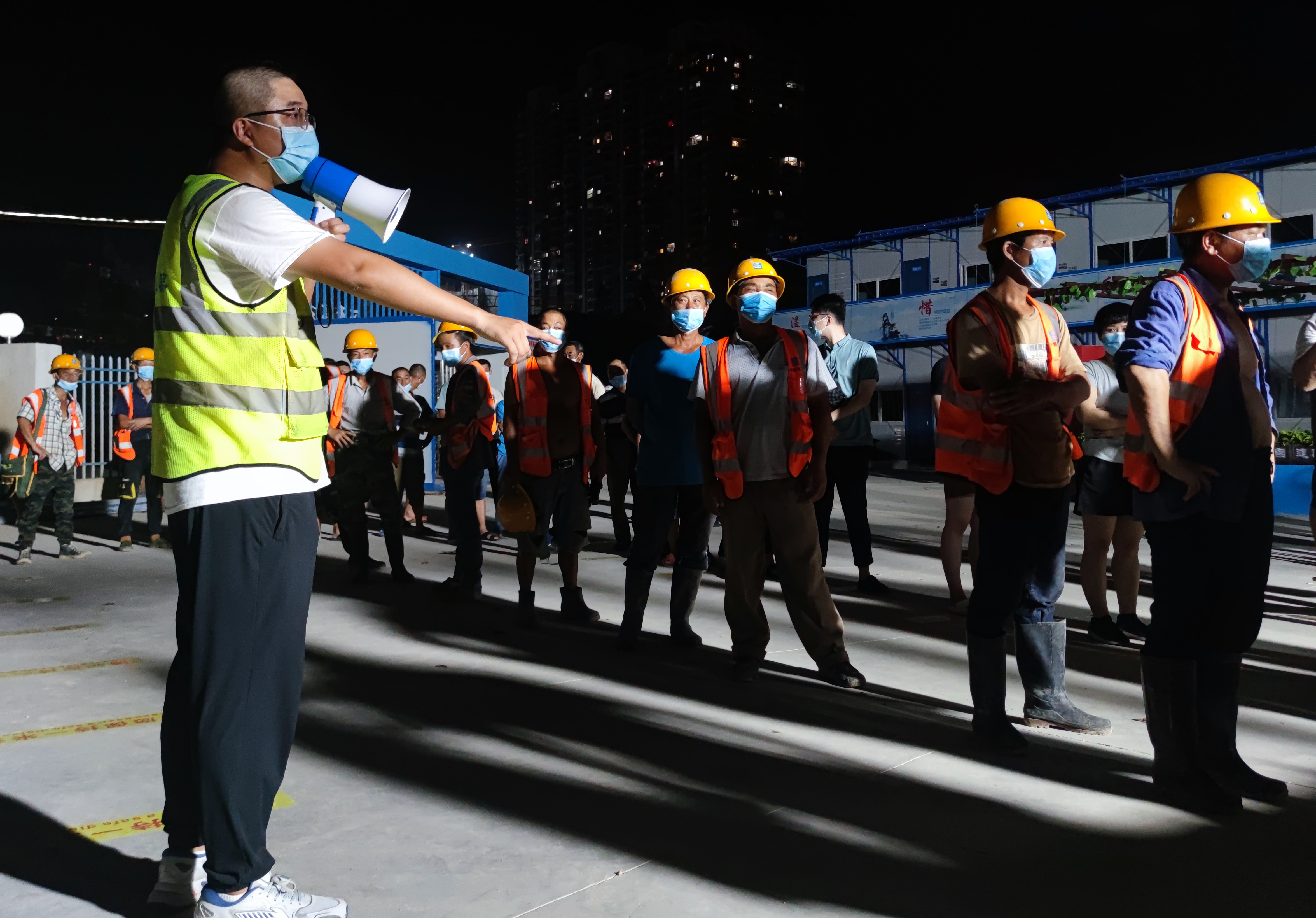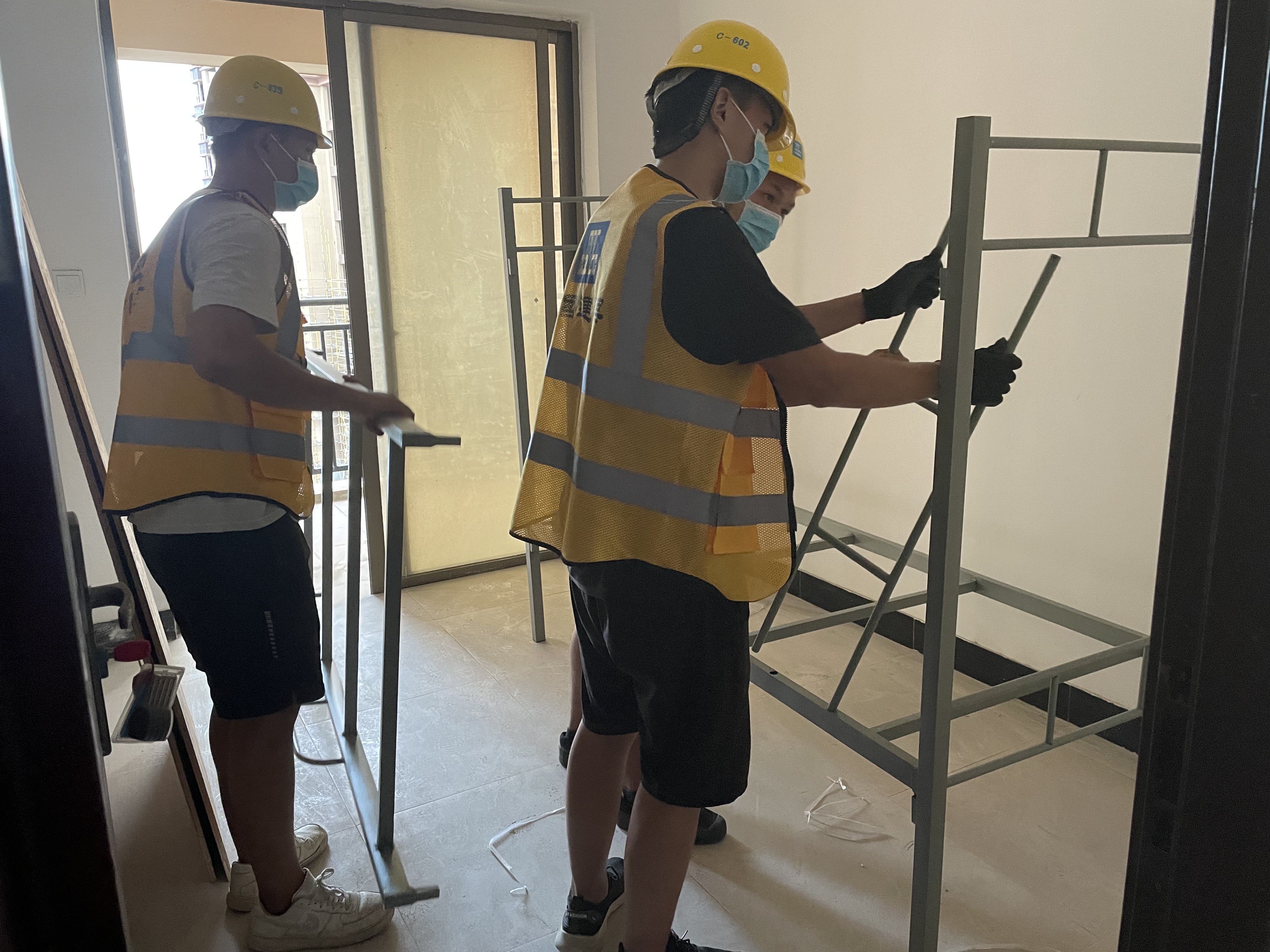 19日晚,項(xiàng)目部再次接到援建任務(wù),要求在同一地點(diǎn)額外完成另一棟醫(yī)護(hù)人員休息點(diǎn)建設(shè),再增加約400張床位,且要求在20日晚間達(dá)到入住要求。面對(duì)新的攻堅(jiān)任務(wù),項(xiàng)目部不講條件、不計(jì)付出,緊急調(diào)集60多名管理人員和100余名作業(yè)人員連夜奮戰(zhàn),全力以赴,確保按時(shí)完成任務(wù)。
