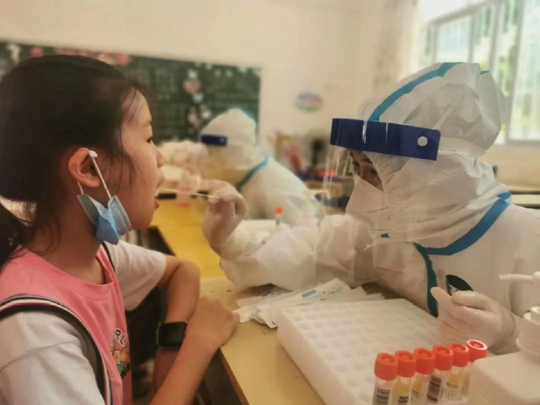 作為母親,在核酸采樣現(xiàn)場。她對孩子充滿了耐心。有些孩子因為害怕不配合,她就哄著:“寶寶乖,阿姨看看牙齒漂不漂亮,有沒有長蟲啊~” 她說,看見這些孩子的時候就會想起自家寶貝,不舍得強迫他們。配合好的就夸,不肯配合的就哄,總歸是希望他們健健康康平平安安的。