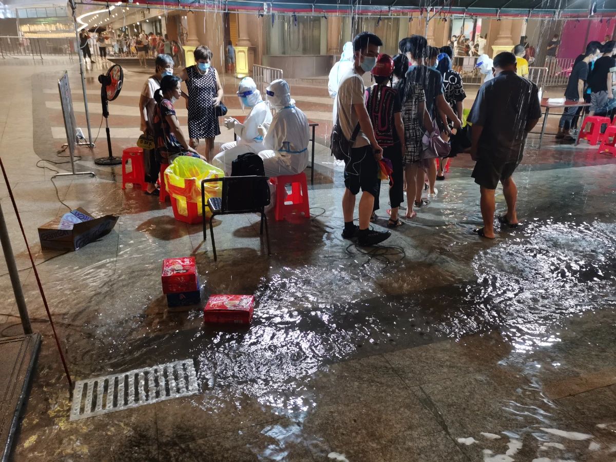 那天,核酸采樣結(jié)束后,林健表示雨水和汗水灌滿了一身