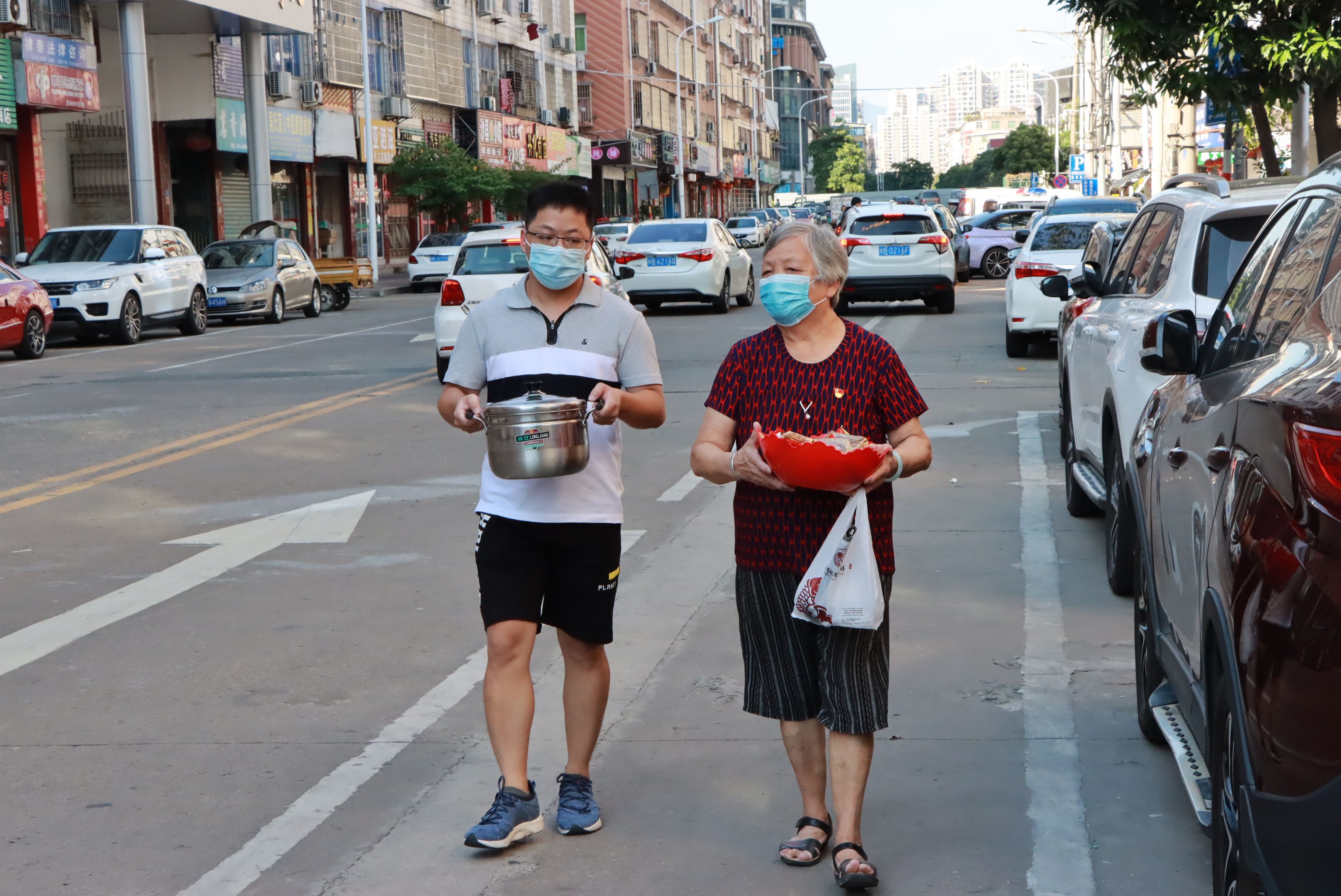 臺(tái)海網(wǎng)9月27日訊 據(jù)福建日?qǐng)?bào)·新福建客戶端報(bào)道 26日,在莆田市荔城區(qū)鎮(zhèn)海街道鎮(zhèn)海社區(qū)疫情防控卡口,許金妹和孫子李杰抬著剛剛煮好的綠豆湯走過去,為6名正在值守的志愿者送上“一絲清涼”。其中,還有她的兒子李建榮和另一個(gè)孫子李一偉,忙著給過往的行人檢查健康碼、測(cè)體溫。