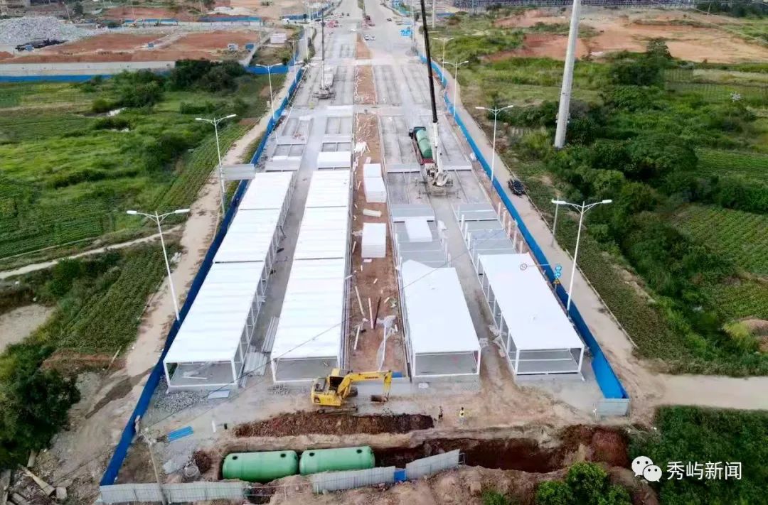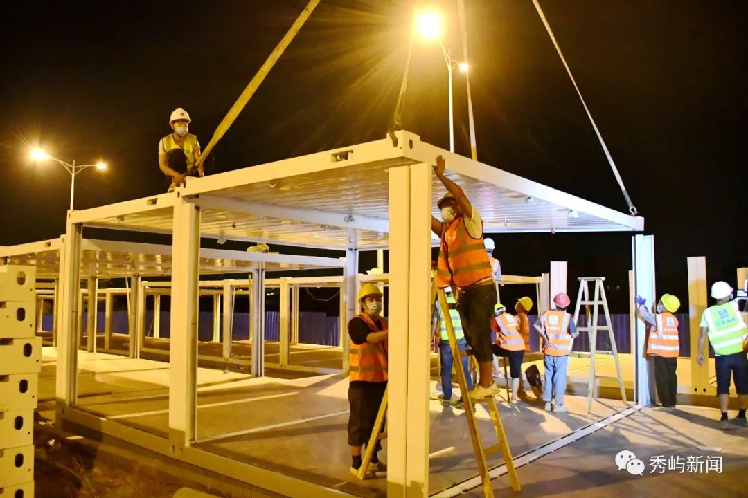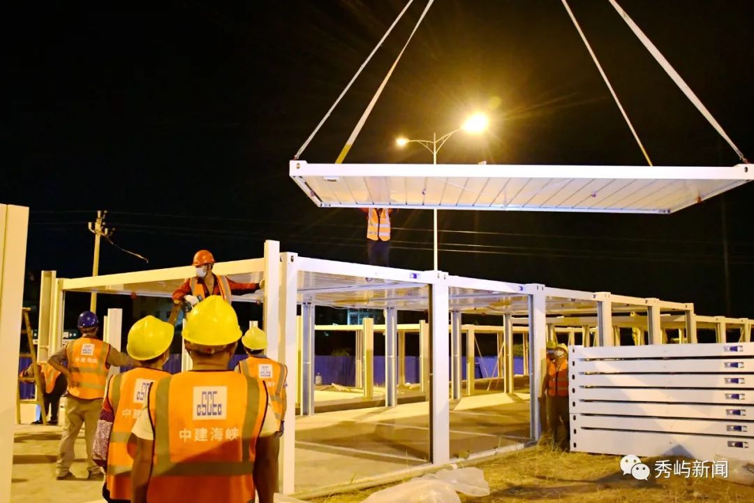 9月27日凌晨,東方天際曙光微瀾,四野寂寂靜默無聲。但位于秀嶼區(qū)笏石鎮(zhèn)秀港路的秀嶼區(qū)應(yīng)急隔離點(diǎn)(方艙)項(xiàng)目建設(shè)工地上依然燈火通明、機(jī)器轟鳴,一派熱火朝天的施工場(chǎng)景。