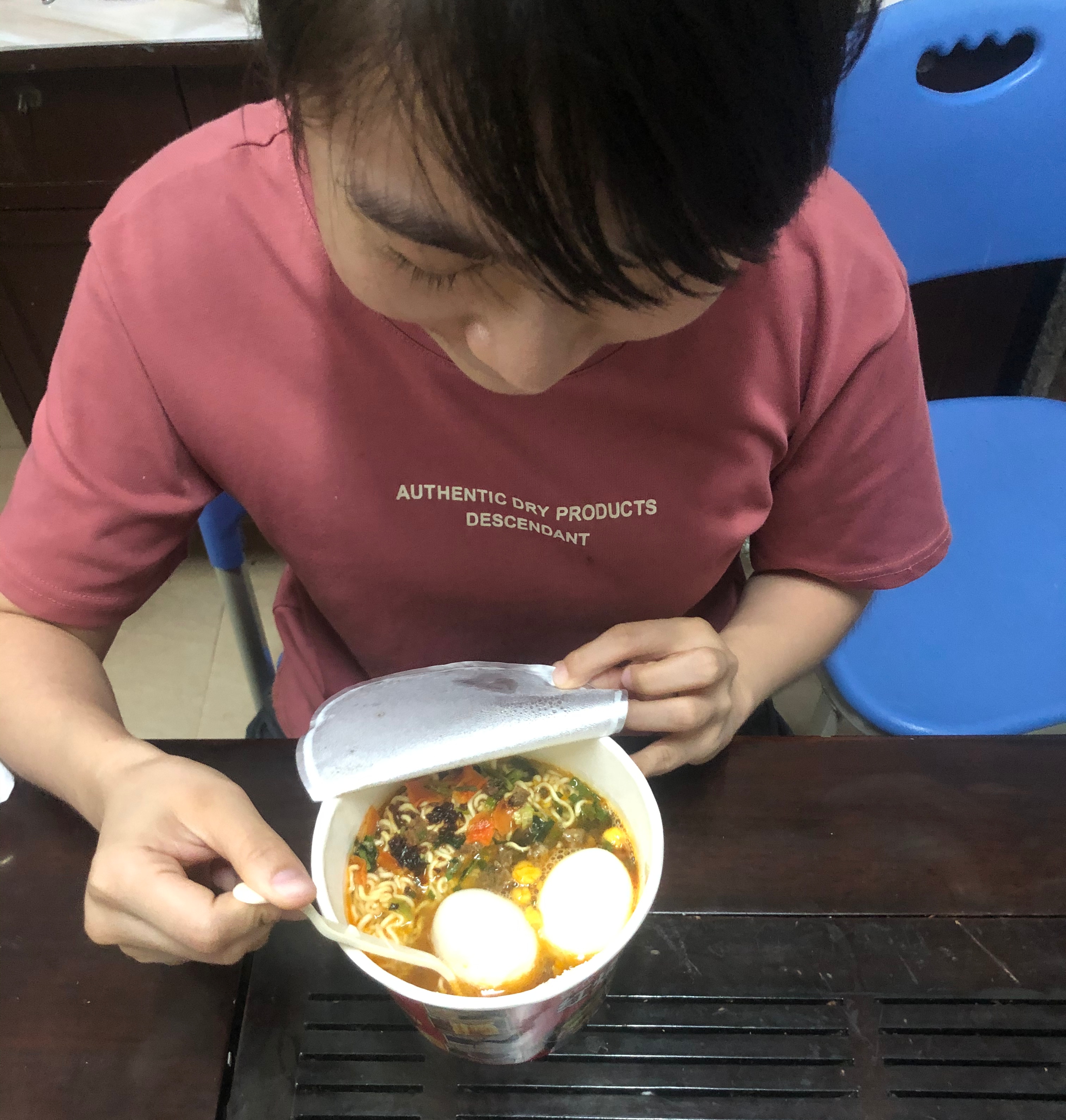 原來(lái),當(dāng)天晚上,隔離點(diǎn)的同事在晚餐時(shí)間意外得知,是卓秋萍的32歲生日。8點(diǎn)過(guò),開(kāi)完當(dāng)天的碰頭會(huì),莆田市司法局副局長(zhǎng)、工作隊(duì)隊(duì)長(zhǎng)林德霖第一時(shí)間來(lái)到宿舍,他燒了一壺水,沖好一桶方便面,加上另一位同事找來(lái)的兩只雞蛋,完成了極其簡(jiǎn)單但已是當(dāng)下“最高規(guī)格”的一份“長(zhǎng)壽面”。