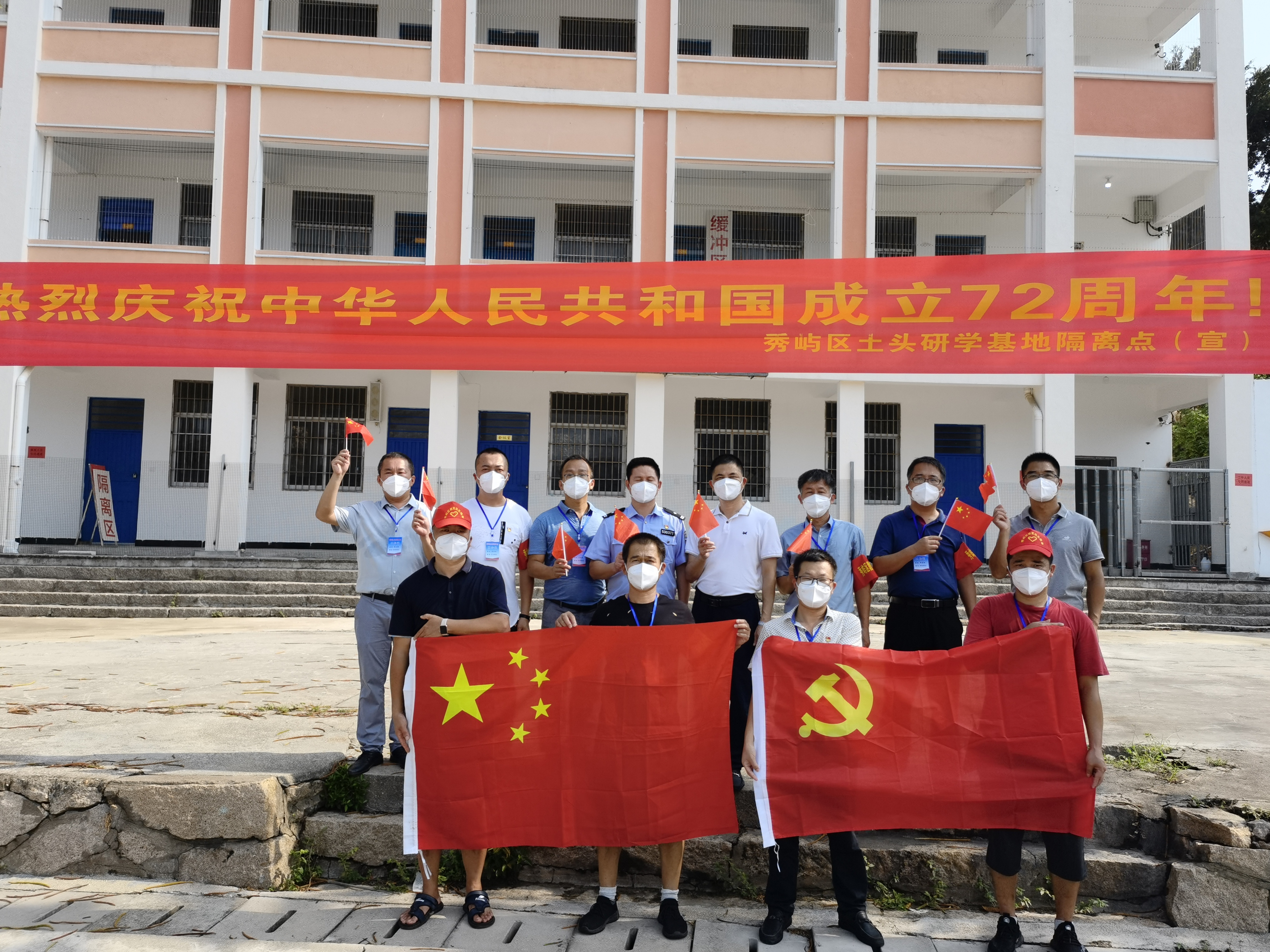 最后,駐點干部合影留念,記錄這特殊的國慶佳節(jié)。全體人員情不禁高呼,“抗疫必勝,秀嶼必勝”“強(qiáng)國有我,抗疫有我”!