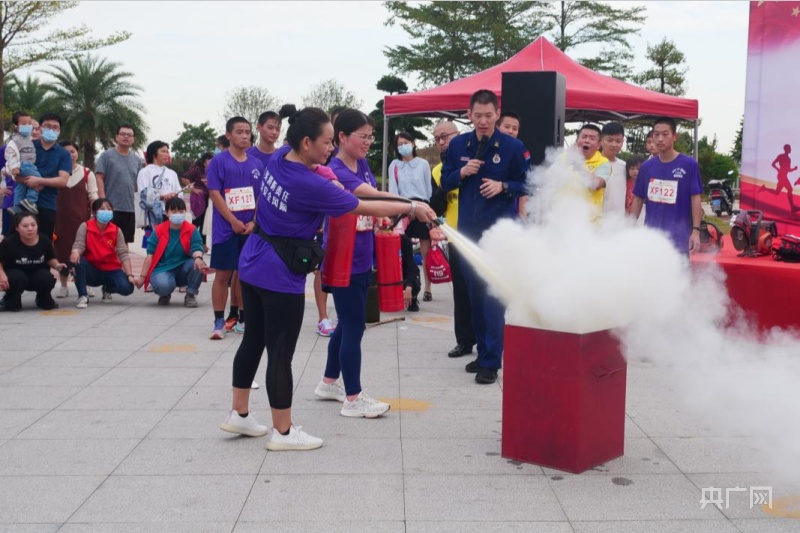 活動現(xiàn)場,來自全市各行各業(yè)的150人參與公益跑,每位隊員身著統(tǒng)一服裝,背后印著今年“119”全國消防月的主題“落實消防責(zé)任,防范安全風(fēng)險”,在參賽包中,還附上一份消防安全知識圖冊,圖文并茂,內(nèi)容豐富?,F(xiàn)場還展示了各類消防器材,消防指戰(zhàn)員為大家講解了滅火器材的使用、火災(zāi)撲救的要領(lǐng)、逃生自救等方法,并讓在場人員親自實踐模擬,做到學(xué)以致用。