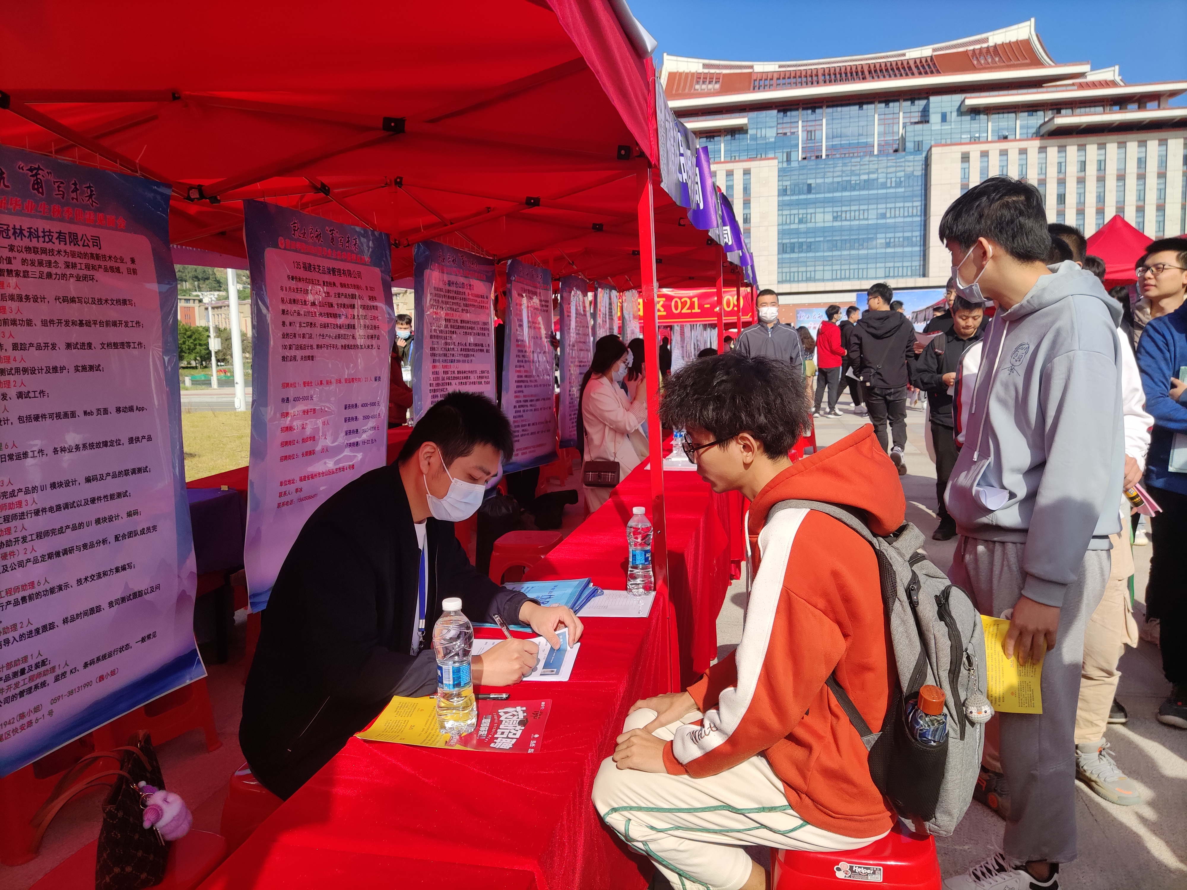 見面會現(xiàn)場,各招聘單位工作人員按照疫情防控常態(tài)化要求,佩戴口罩、核驗兩碼、出示核酸報告、體溫檢測正常后進入校園。