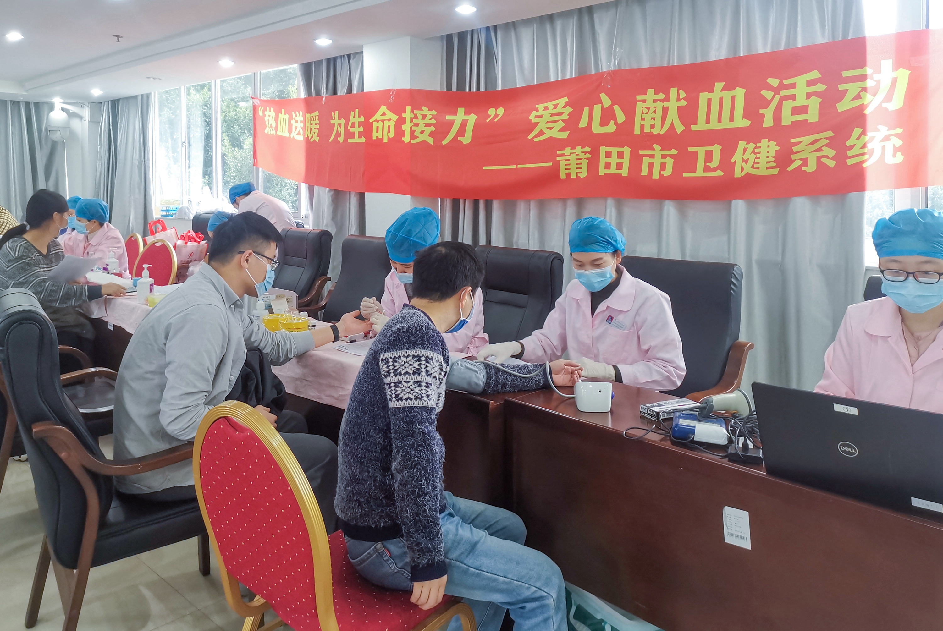 雖然天氣嚴寒,卻無法阻擋醫(yī)院廣大職工的獻血熱情,大家早早就來到獻血活動現(xiàn)場等候。在莆田市中心血站工作人員引導下,大家做好疫情防護,有序進行填表登記、測量血壓、取樣化驗,在確定符合獻血標準后進行獻血。