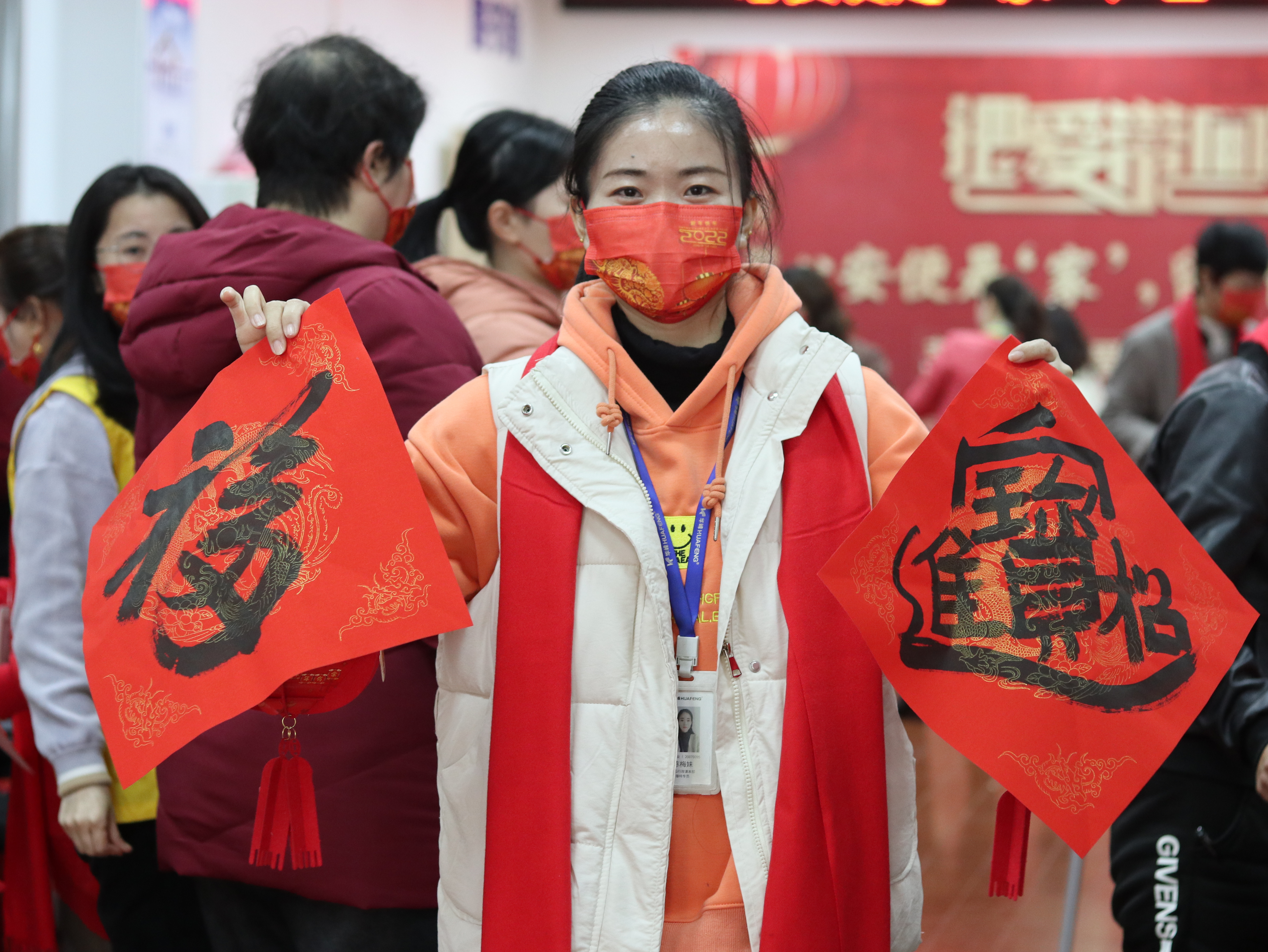 關(guān)懷暖人心,為了對留莆留崗的職工表示感謝,活動現(xiàn)場,荔城區(qū)婦聯(lián)主席黃瑩、中國人壽保險(xiǎn)公司荔城區(qū)支公司經(jīng)理鄭捷為30位留莆女工代表們送上新春紅圍巾與新春大禮包。隨后,女工們在社工帶領(lǐng)下,動手做新春彩燈,跟著莆田楹聯(lián)協(xié)會會長、書法家祁明規(guī)寫春聯(lián),還在心愿墻上寫下一個(gè)新年祝福。