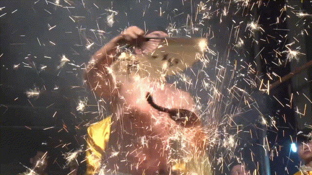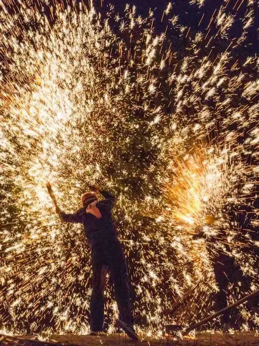 匠人將備好的鐵水用特制的竹片潑灑出“花”。劉朝陽 攝
