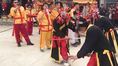 在白塘與黃石兩鎮(zhèn)交界的鎮(zhèn)前、下江頭等地,當(dāng)?shù)氐脑?xí)俗至今還保留著當(dāng)年戚家軍為鼓勵民眾習(xí)武抗倭而興起的僮身“打鐵球”。茅新華 攝