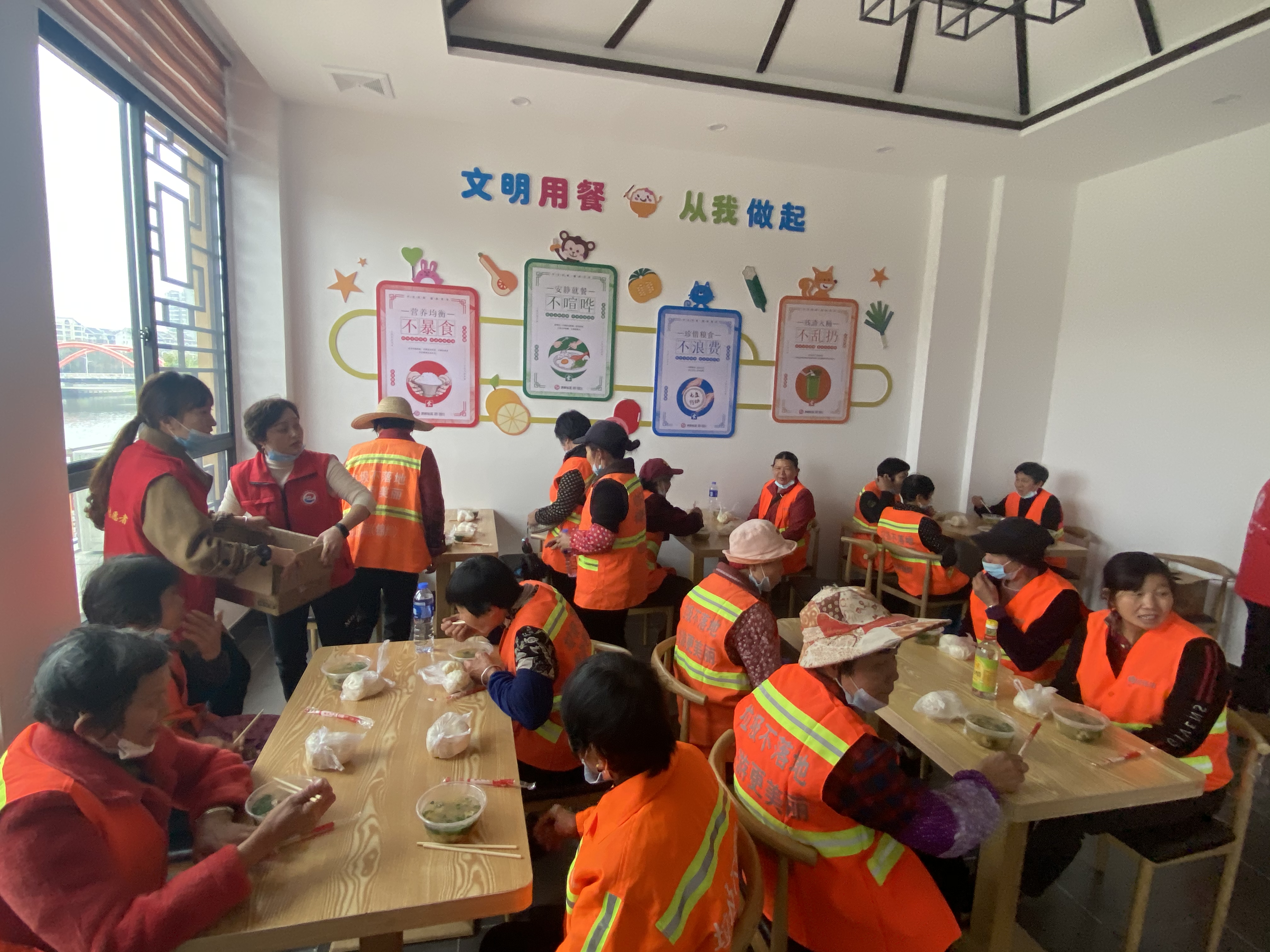 按照仙游民間說法,湯煮豆腐丸子也被稱為“水龍湯”,是民間筵席常備的一道特色菜。打開鍋蓋,熱氣撲面而來,美味的“水龍”宴準備就緒。而在用餐區(qū),穿著橘紅色馬甲的環(huán)衛(wèi)女工們已經就座,熱氣騰騰的“水龍湯”漸次端上了桌,大家或埋頭吃著,或嘮嘮家常,很是溫馨??此破匠5囊活D小吃,不僅飽含著對環(huán)衛(wèi)女工濃濃的關愛,更溫暖了她們的心。