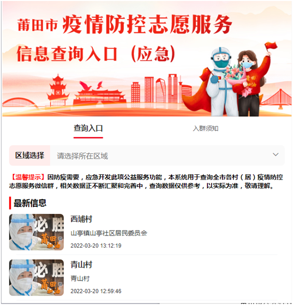 臺(tái)海網(wǎng)3月20日訊 據(jù)福建日?qǐng)?bào)·新福建客戶端報(bào)道 “在平臺(tái)搜索,就能找到所在社區(qū)志愿服務(wù)群,不用像以往需要關(guān)注公眾號(hào),打電話聯(lián)系程序繁瑣。”昨日,在得知需要招募志愿者之后,家住玉湖新城社區(qū)的陳潮暉通過“莆田市疫情防控志愿服務(wù)信息查詢?nèi)肟冢☉?yīng)急)”,查詢志愿服務(wù)群信息,加入了志愿者團(tuán)隊(duì)。