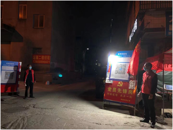 3月19日晚,志愿者在新度鎮(zhèn)厝柄村開展路口設(shè)卡測溫服務(wù)。林纓俊 攝
